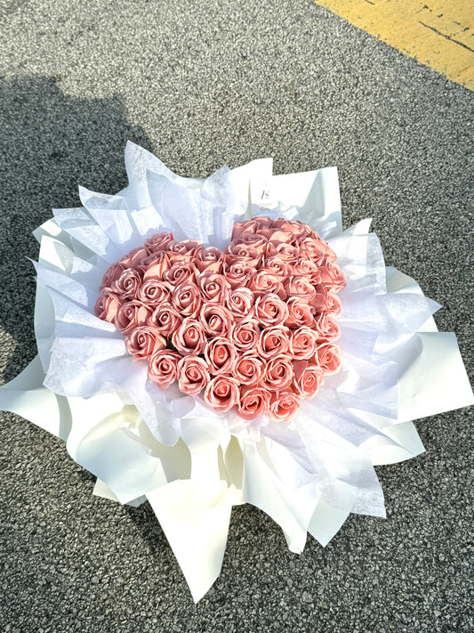 Cynthia Pink Rose 33 Soap Flower Heart Shape Bouquet
