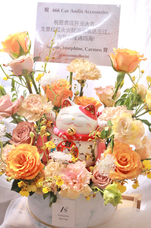 Fortune in Bloom Grand Opening Flower Box with Fortune Cat