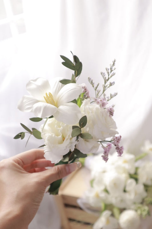 Discover our exquisite wedding collection, featuring bridal bouquets, bridesmaid bouquets, and boutonnieres. Handcrafted with meticulous attention to detail, our elegant floral arrangements add beauty and sophistication to your special day, making every moment unforgettable. Perfect for your dream wedding.