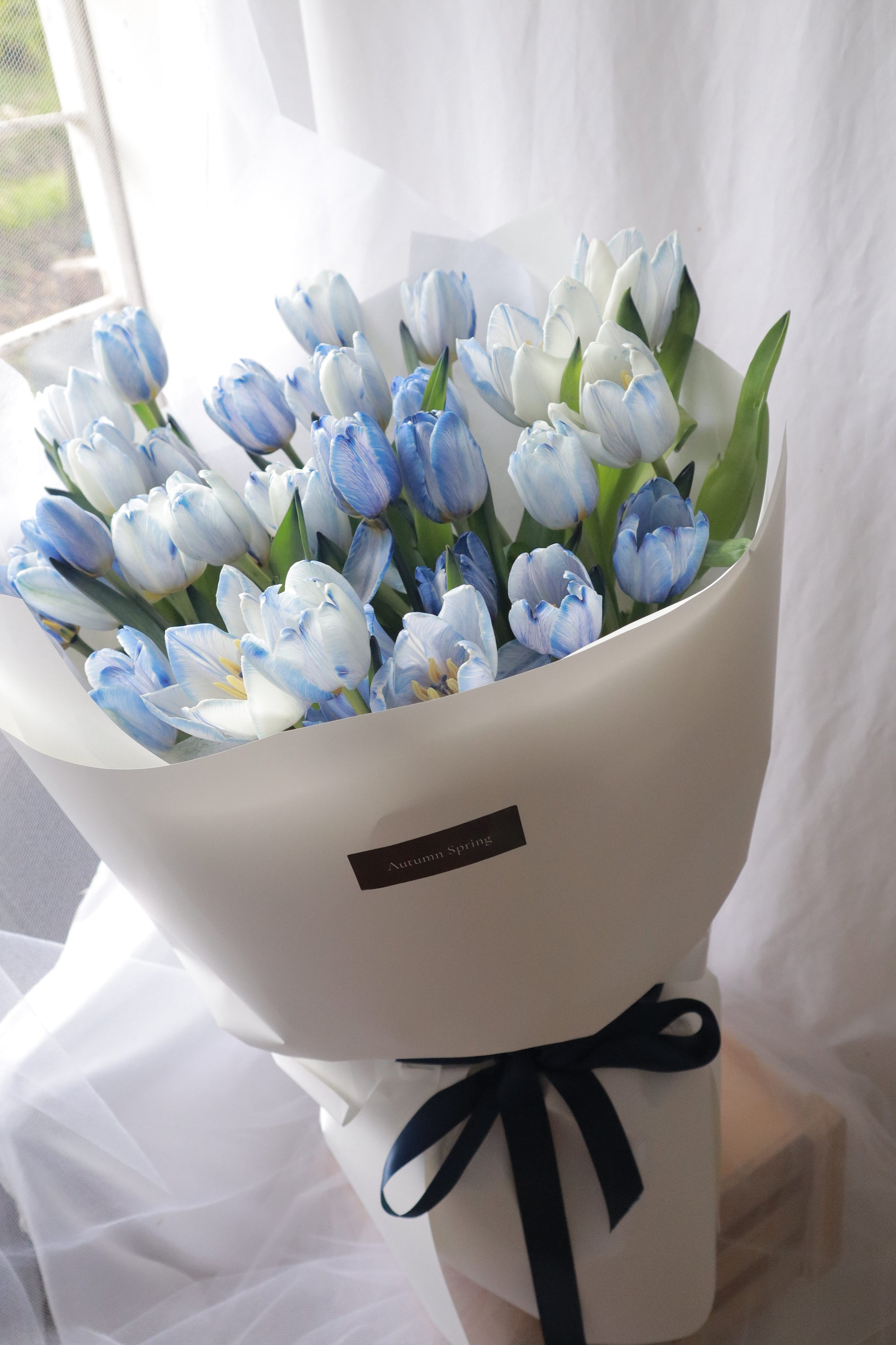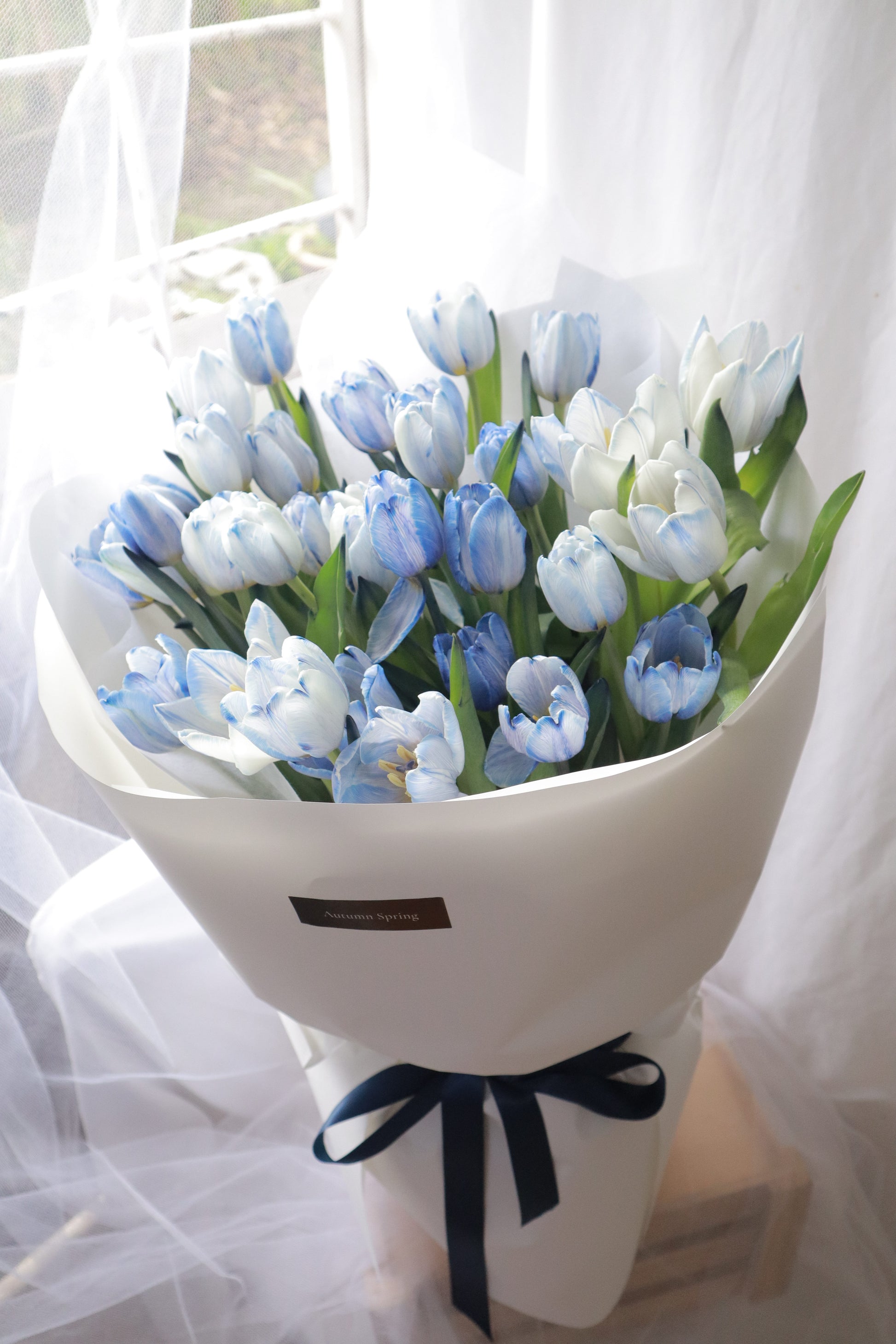 33朵染色蓝郁金香花束