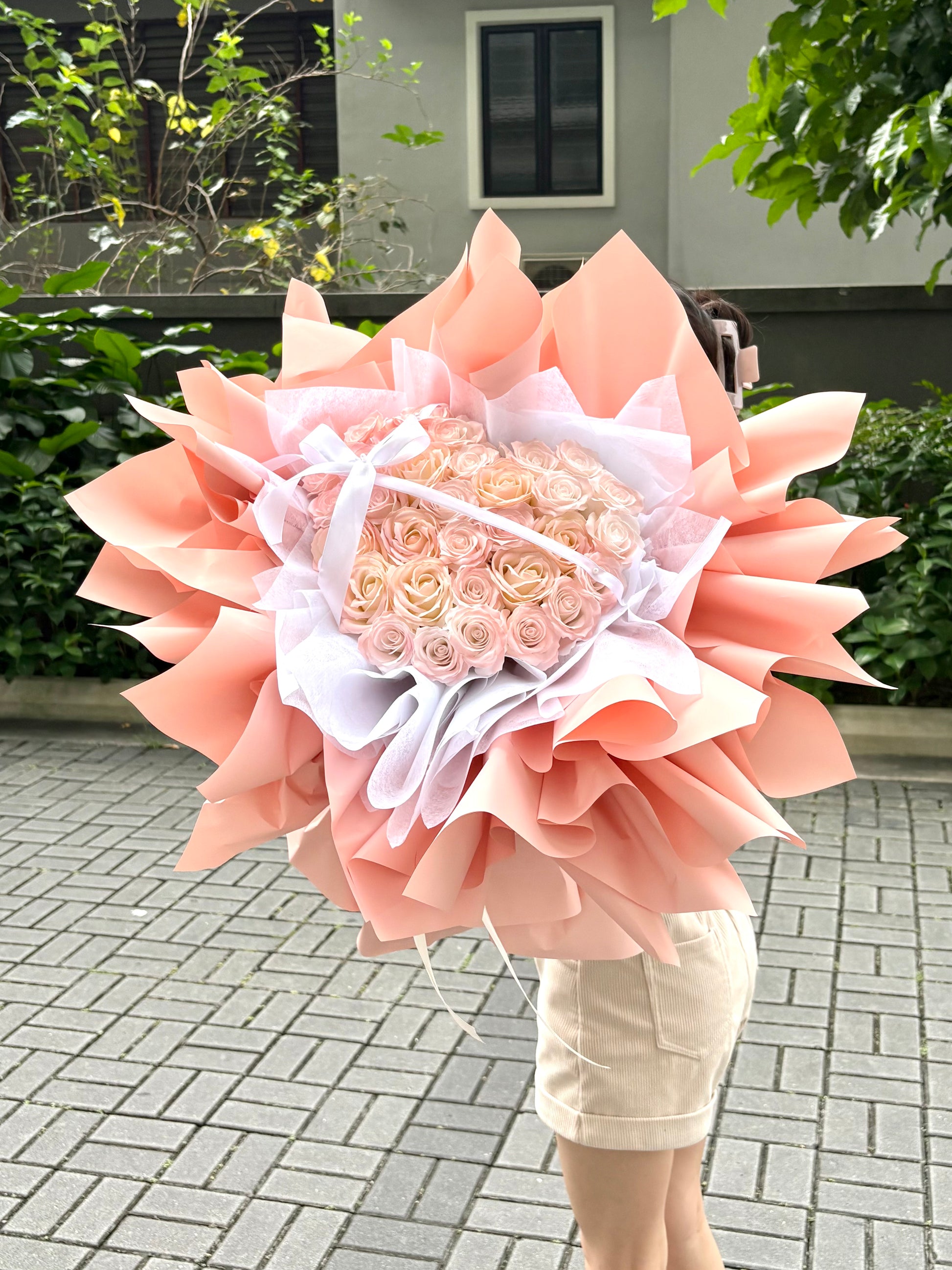 A luxurious bouquet of 33 soap roses, each crafted with delicate detail to symbolize everlasting love, appreciation, and beauty. This timeless arrangement is perfect for any occasion, whether it’s to express admiration, celebrate love, or simply brighten someone's day. Wrapped with care, this bouquet will last forever, just like your feelings