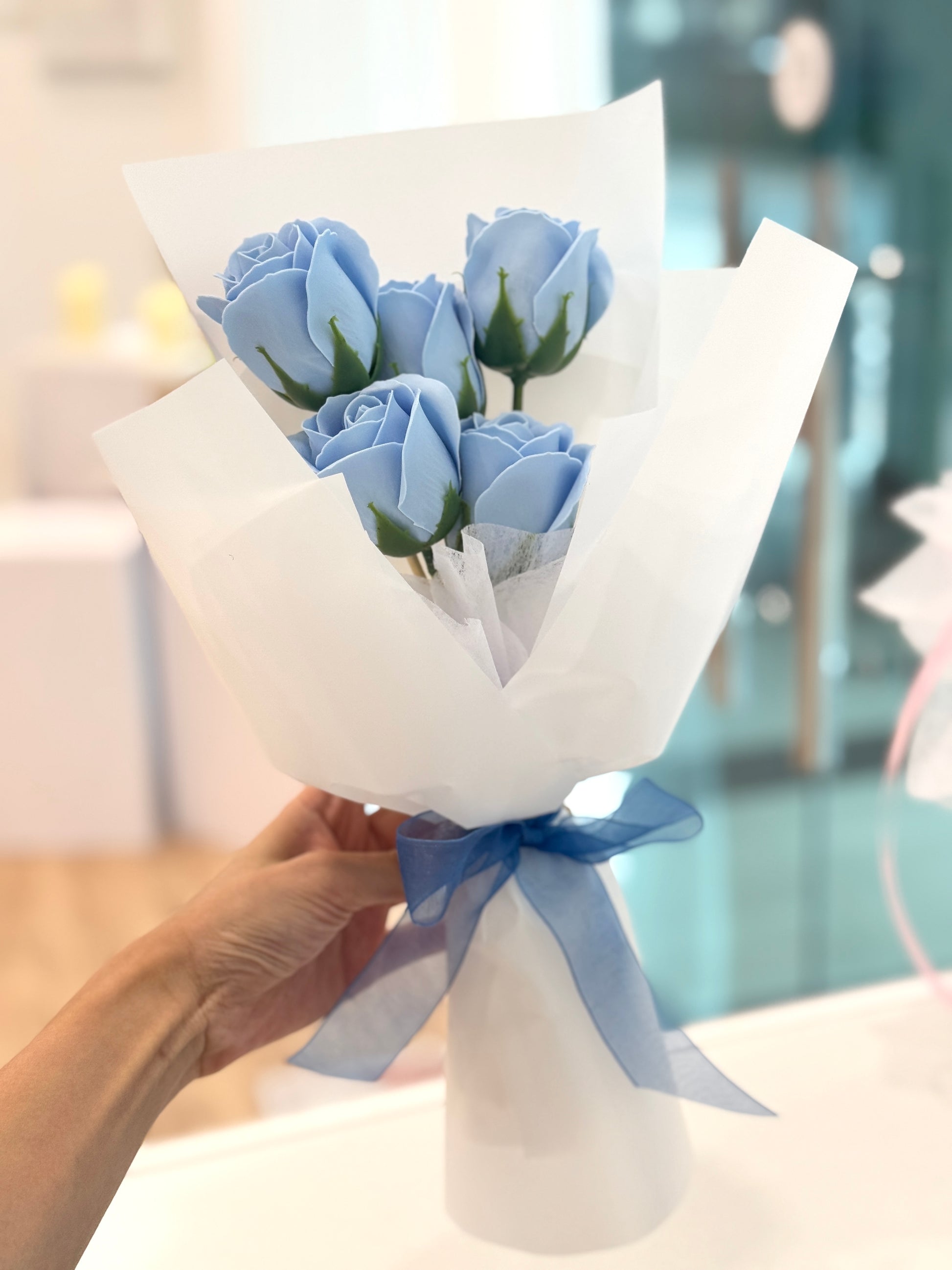Simple yet charming, this mini bouquet features 5 delicate blue soap flower stalks — a symbol of calm, trust, and sincerity. Compact and long-lasting, it’s perfect as a thoughtful gesture for friends, colleagues, or loved ones.