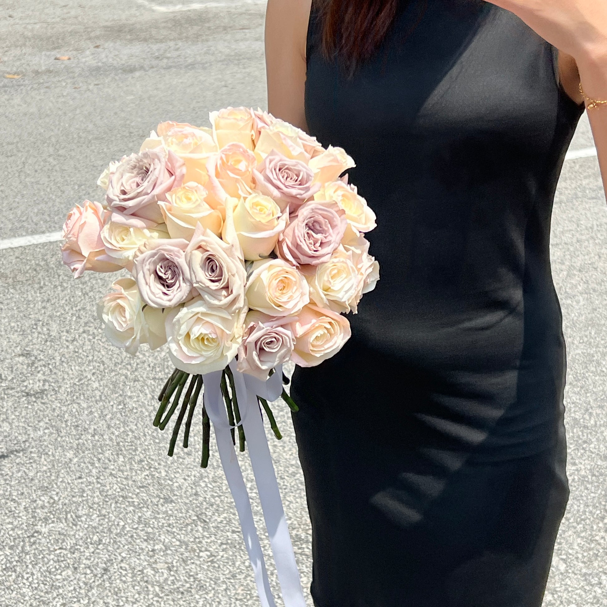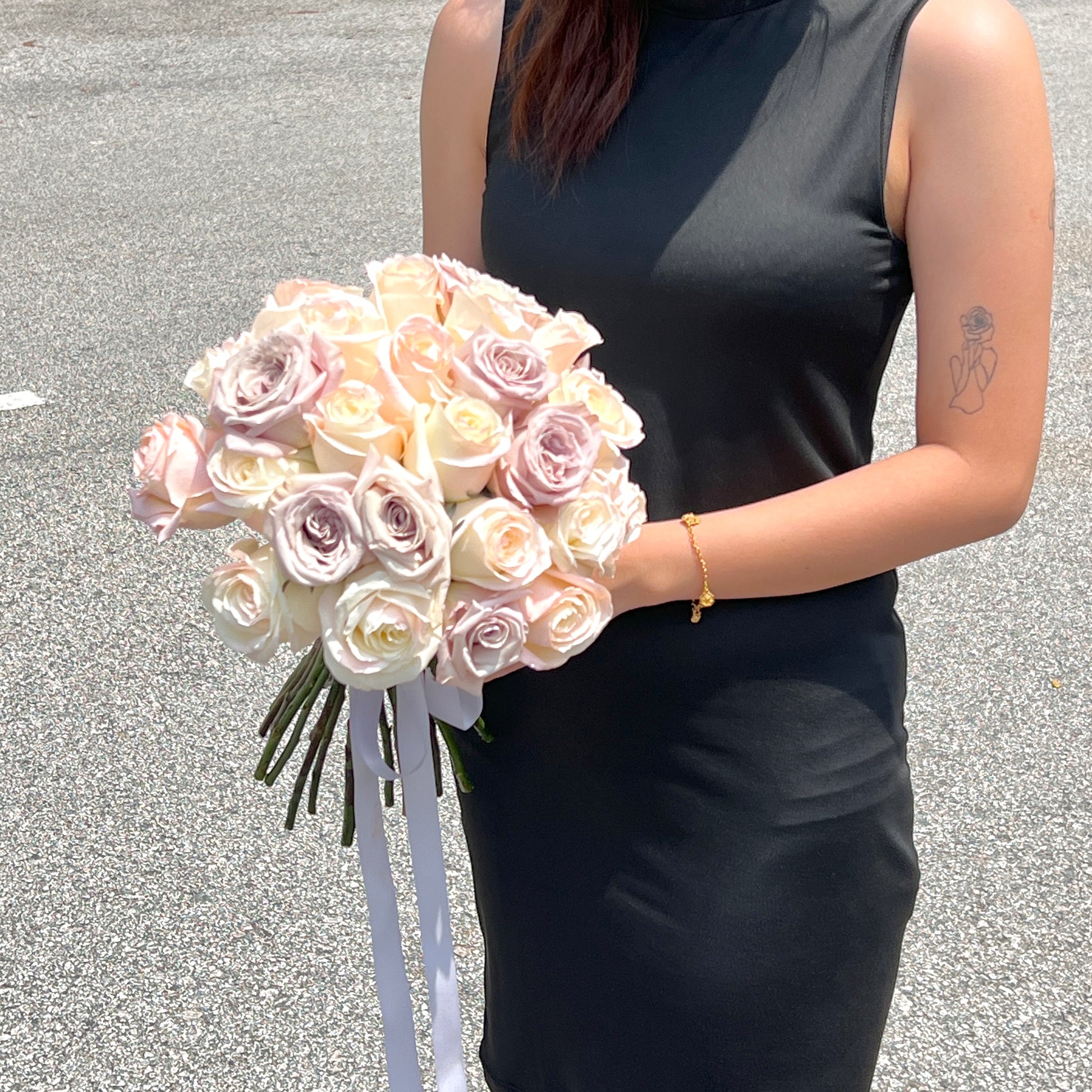 Embrace timeless elegance with our Amber Embrace Bridal Bouquet. Manta and White Roses intertwine in a graceful display of beauty. Perfect for adding a touch of sophistication and charm to your wedding day ensemble.