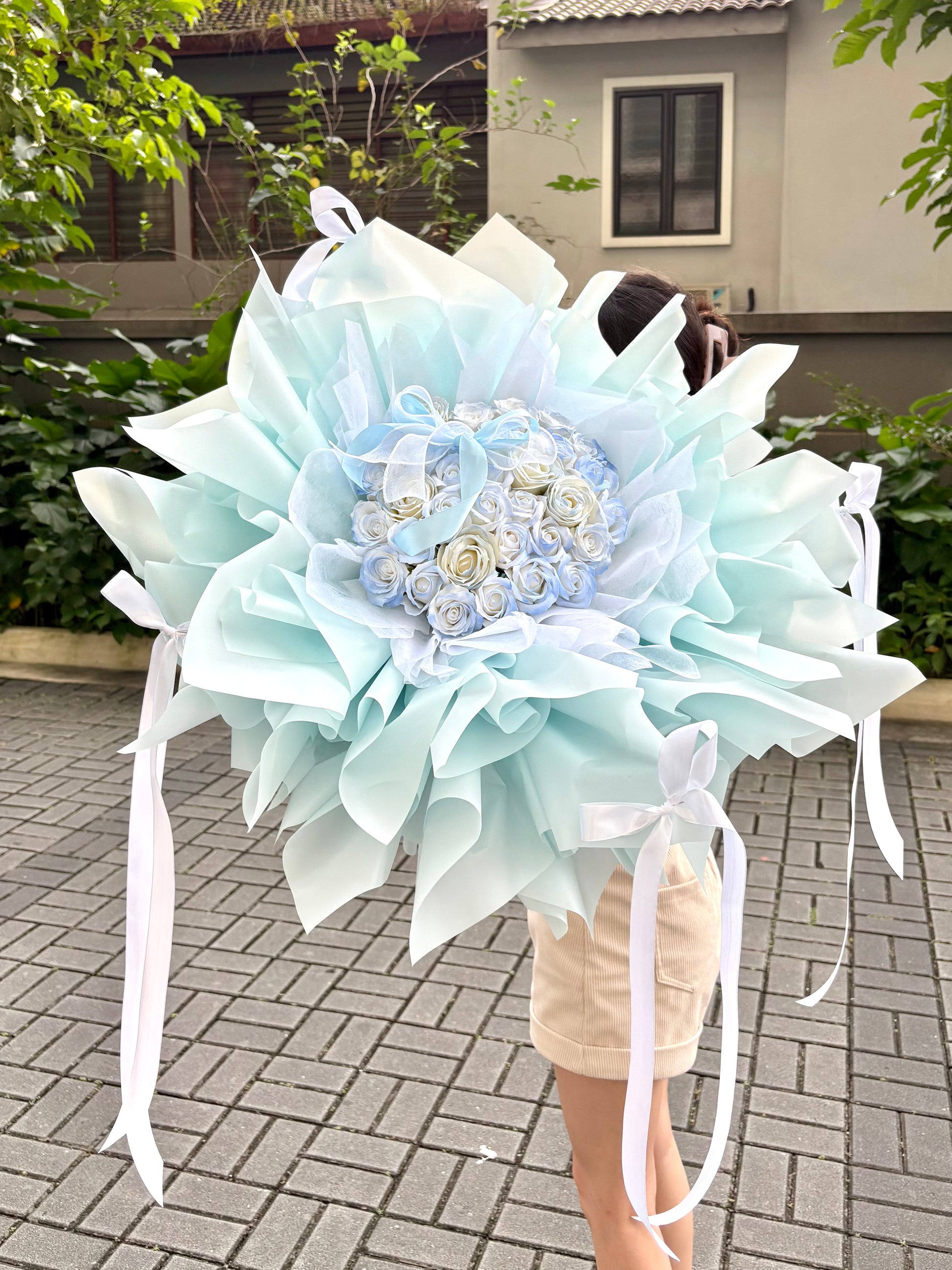 Blue Reverie is a serene and elegant bouquet of blue-toned soap flowers, capturing the calm beauty of a dreamlike moment. The shades of blue symbolize trust, tranquility, and deep affection — perfect for expressing a love that is steady, sincere, and timeless.