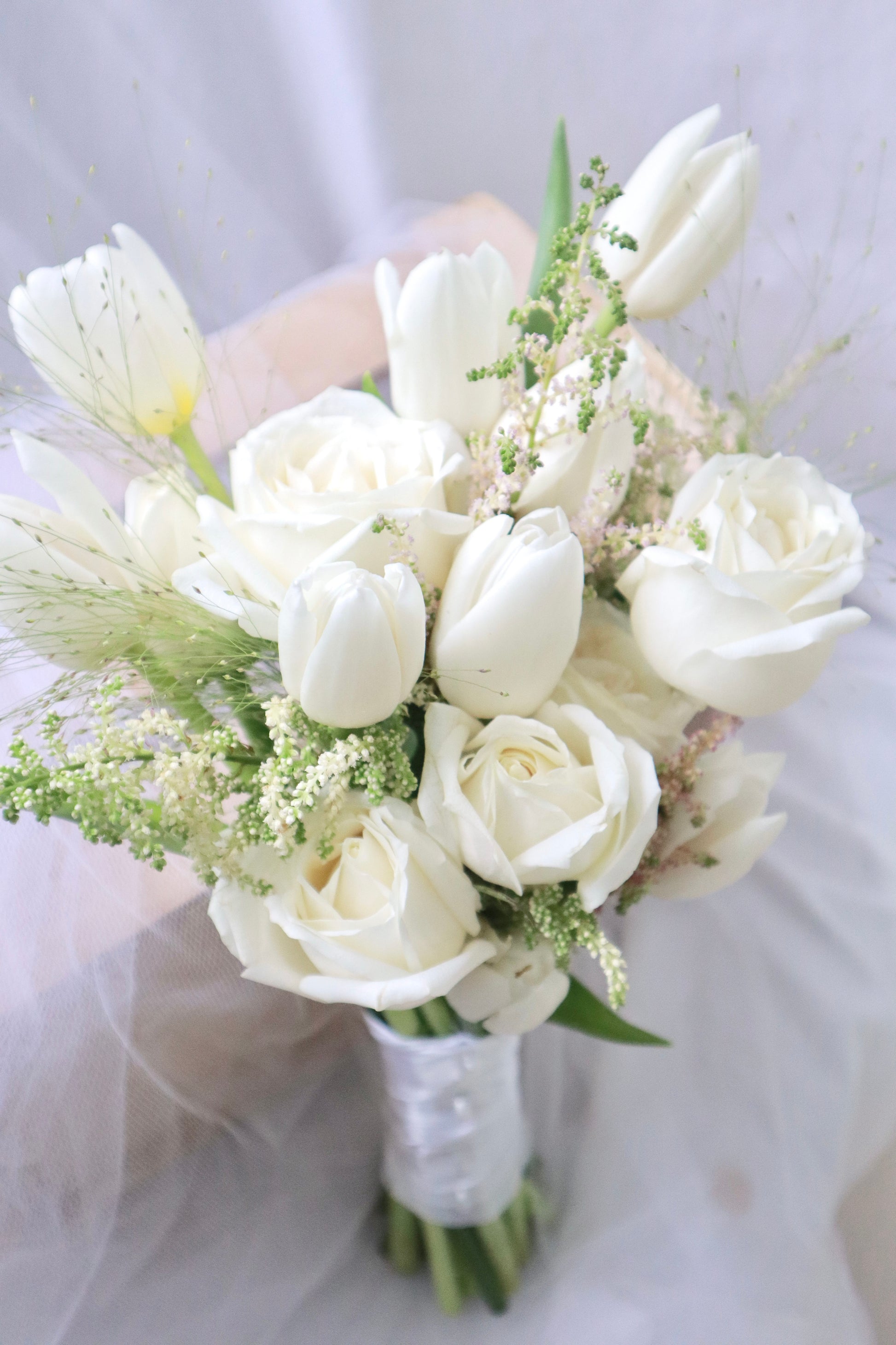 White Rose, White Tulip, Fountain Grass, Astilbe