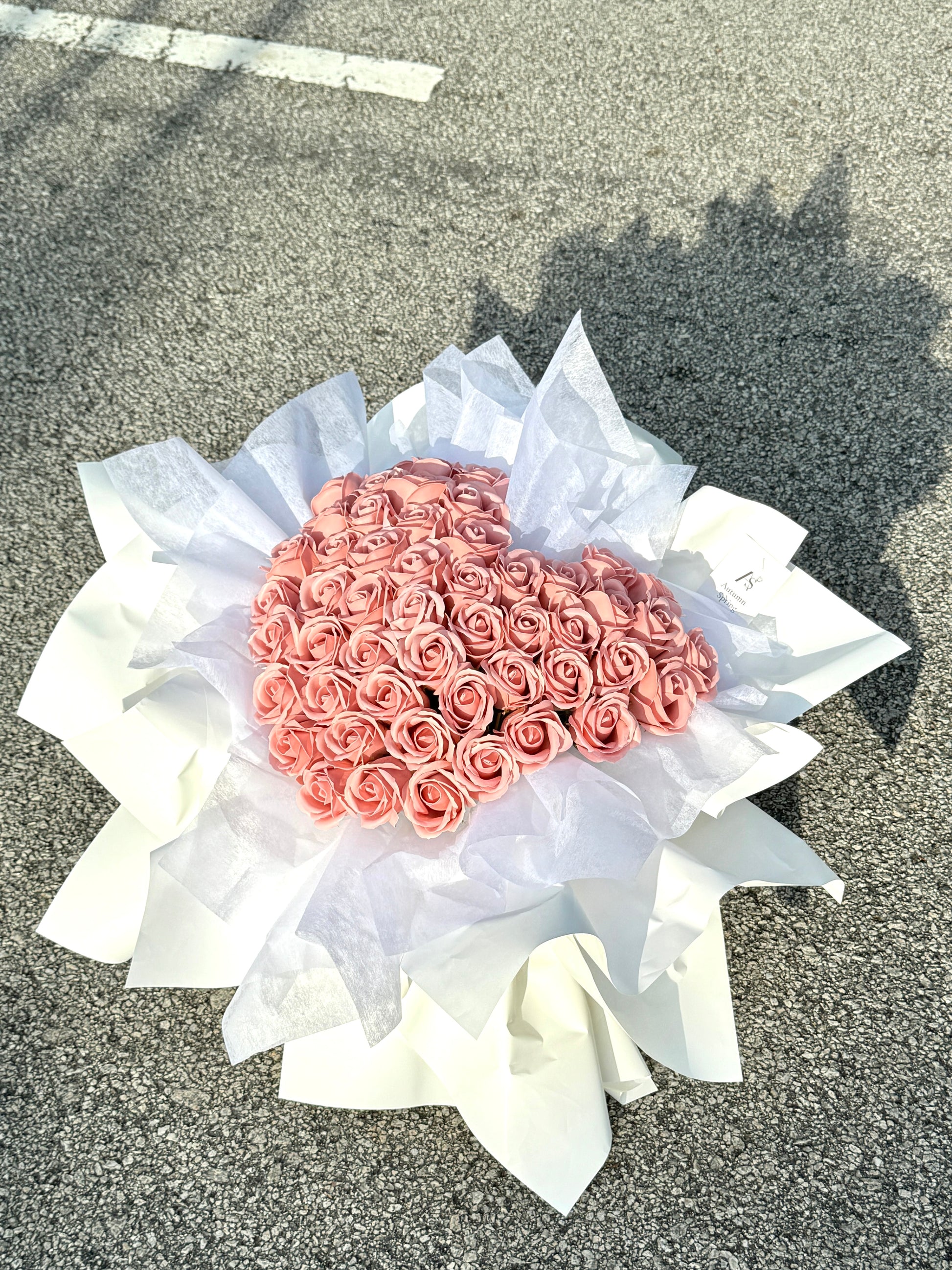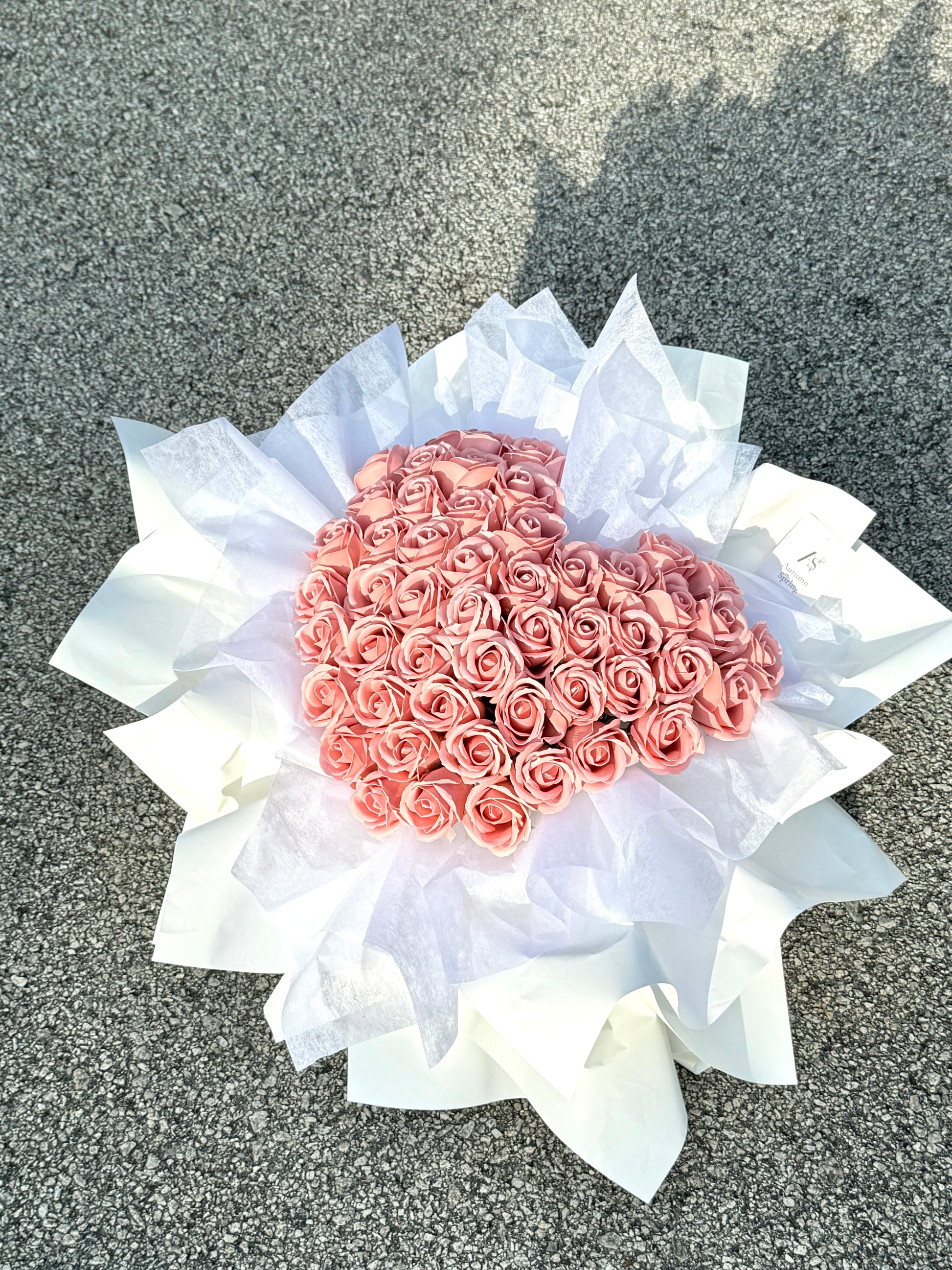Cynthia Pink 520 Soap Rose Flower Heart Shape Bouquet