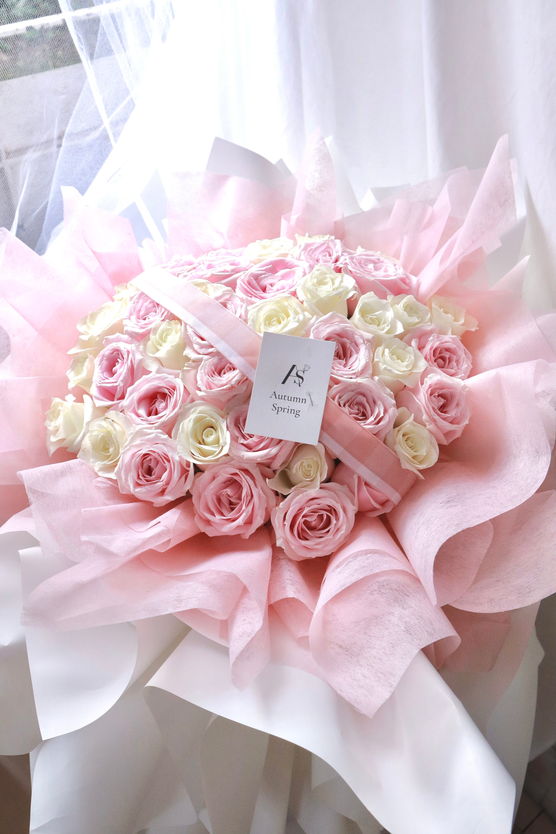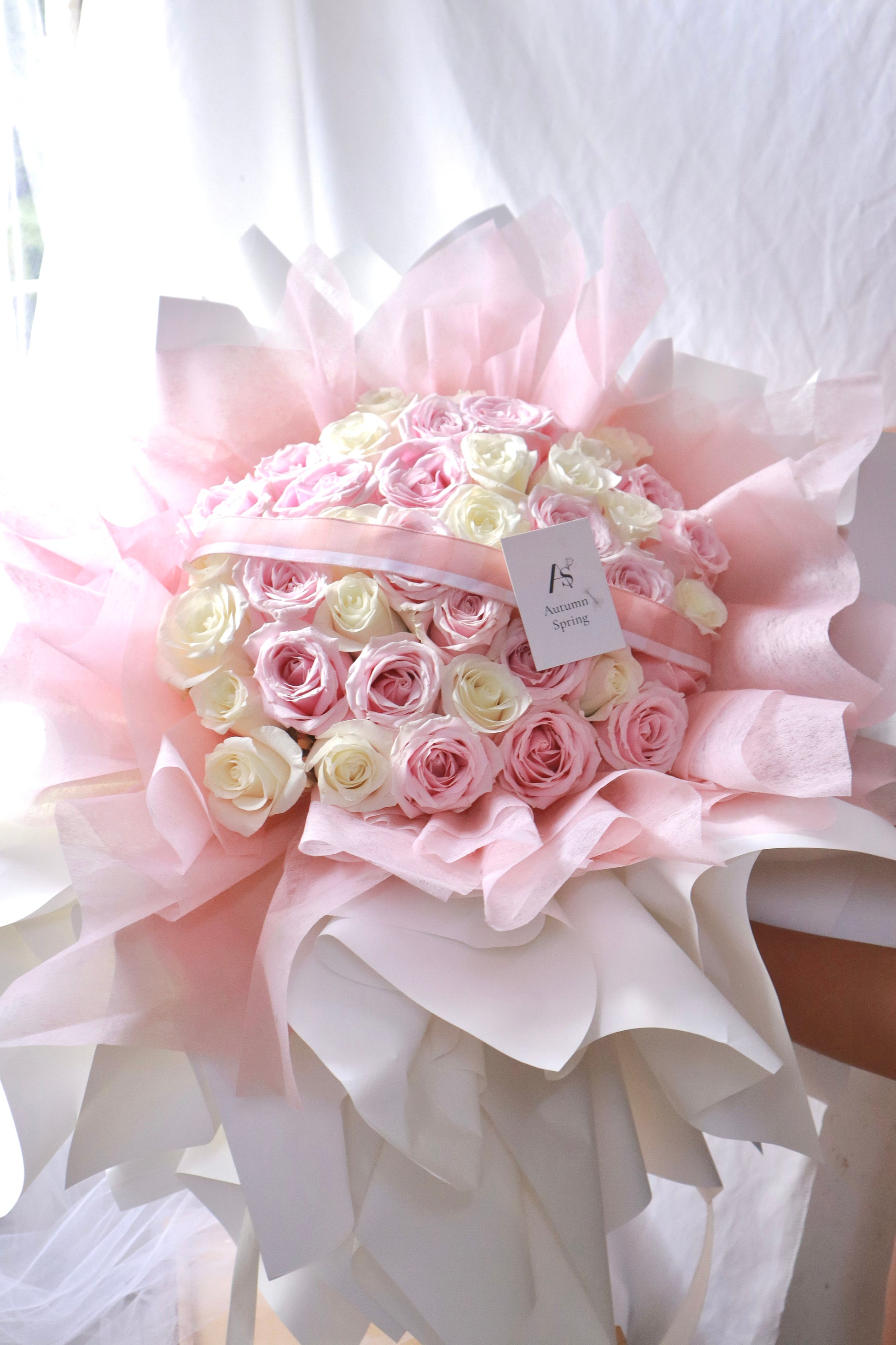 The Dolce White and Pink Rose Bouquet is a perfect harmony of classic white and soft pink roses. This graceful combination evokes timeless romance, blending purity with a touch of sweetness for a delicate and elegant floral statement.
