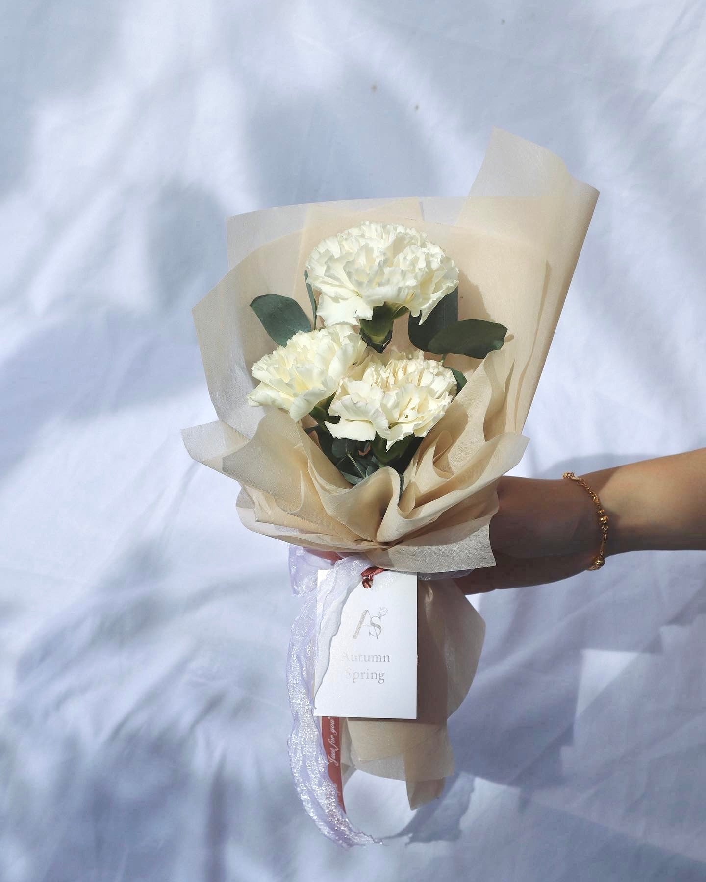 Delight in the simplicity of our Elegant Trio Carnation Bouquet. Featuring three stems of vibrant carnations, this arrangement exudes understated charm and elegance. Perfect for any occasion, it adds a touch of grace to your floral ensemble.