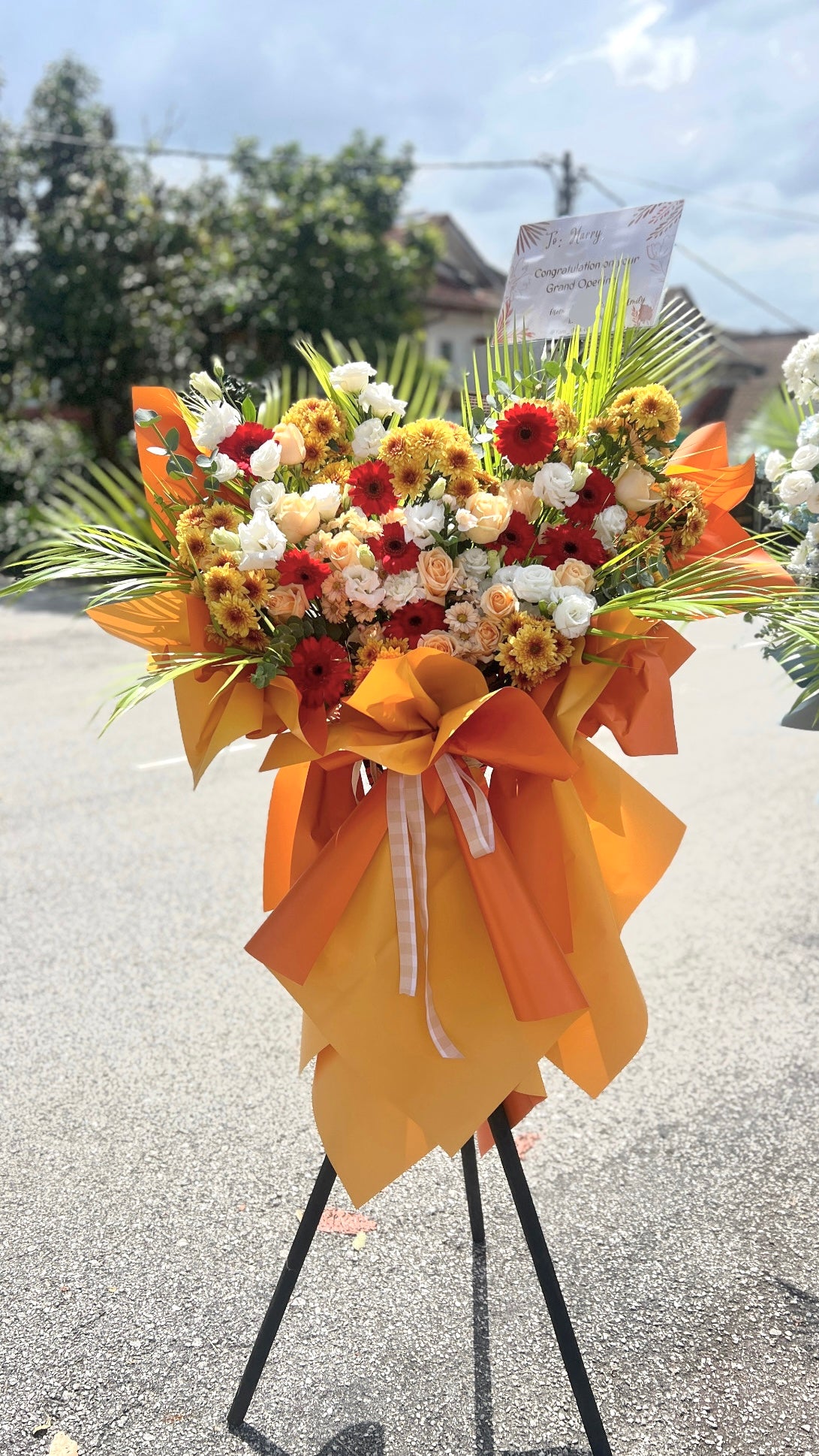 Set the stage on fire with our Fiery Fiesta Grand Opening Flower Stand. A vibrant blend of orange and red tones ignites excitement and energy. Perfect for making a bold statement, this stand adds warmth and vibrancy to any grand opening celebration.