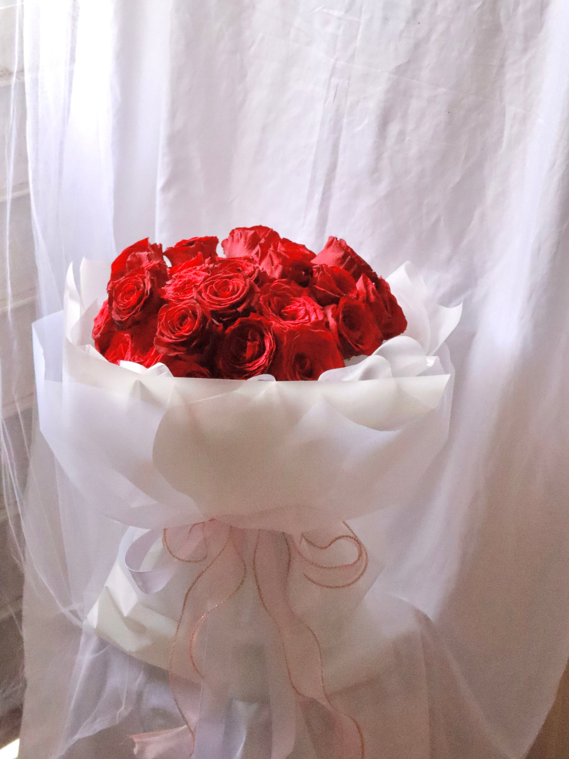 The Forever 33 stalks Red Rose Bouquet is a stunning arrangement featuring an elegant display of vibrant red roses. This bouquet is designed to convey a timeless message of love and romance, with the rich, deep color of the roses taking center stage. The simplicity of the bouquet, without any additional filler flowers, allows the beauty and symbolism of the red roses to shine.