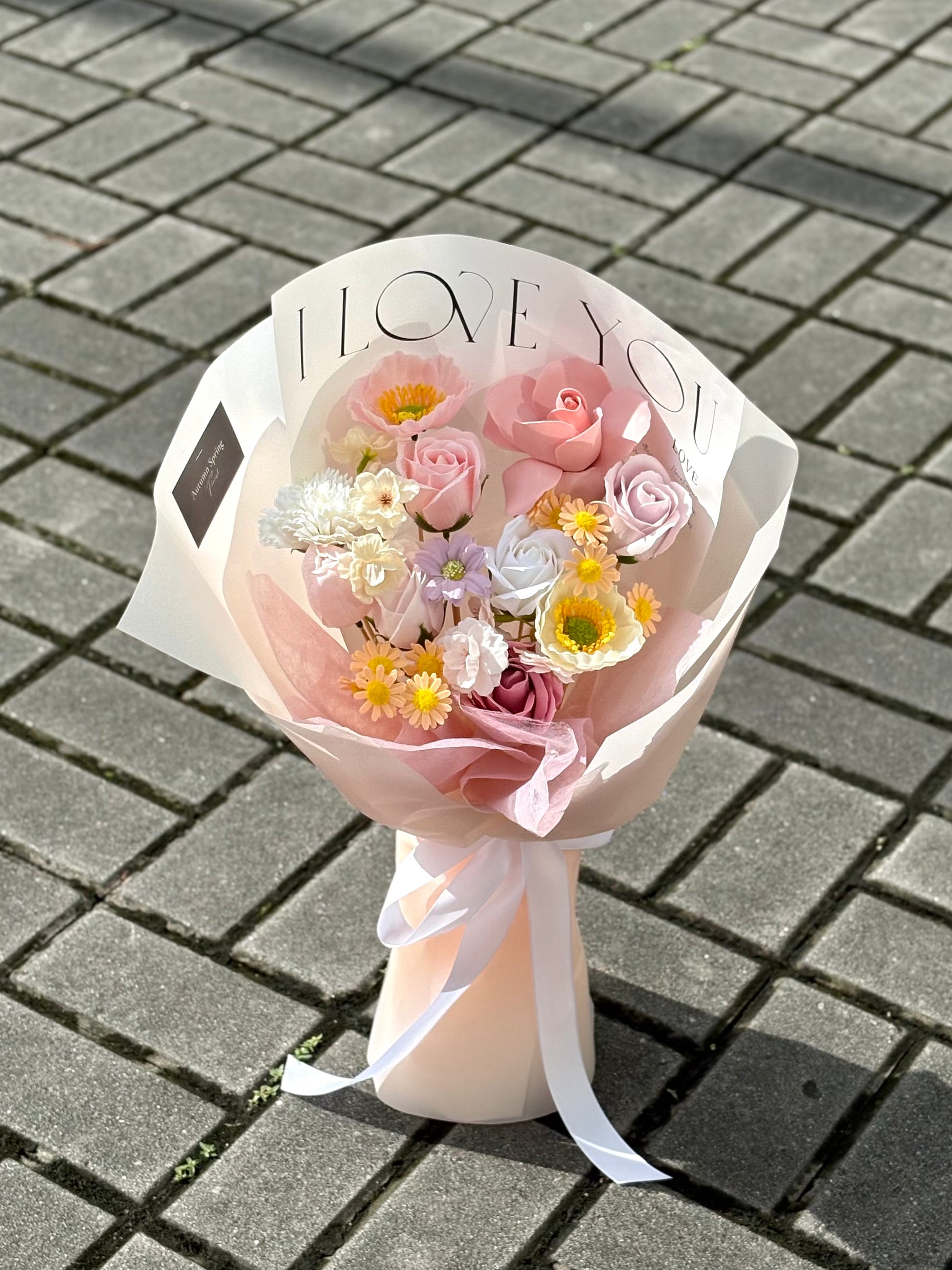 This stunning mixed soap flower bouquet captures the essence of timeless elegance.Lightly scented and incredibly realistic, it’s the perfect symbol of love, admiration, and timeless beauty.