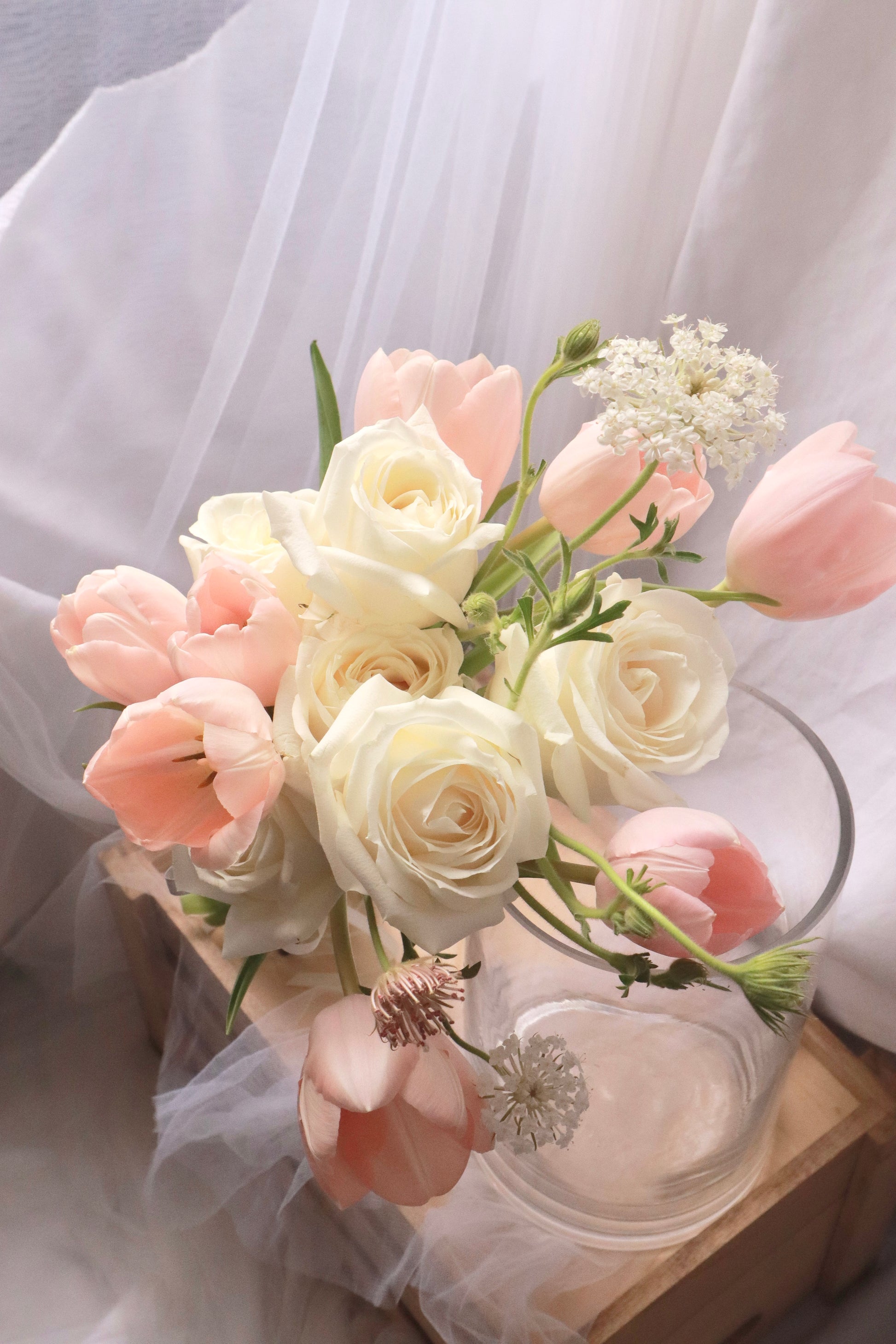欢迎联系我们定制您理想的花艺,可选择花材、颜色和风格。