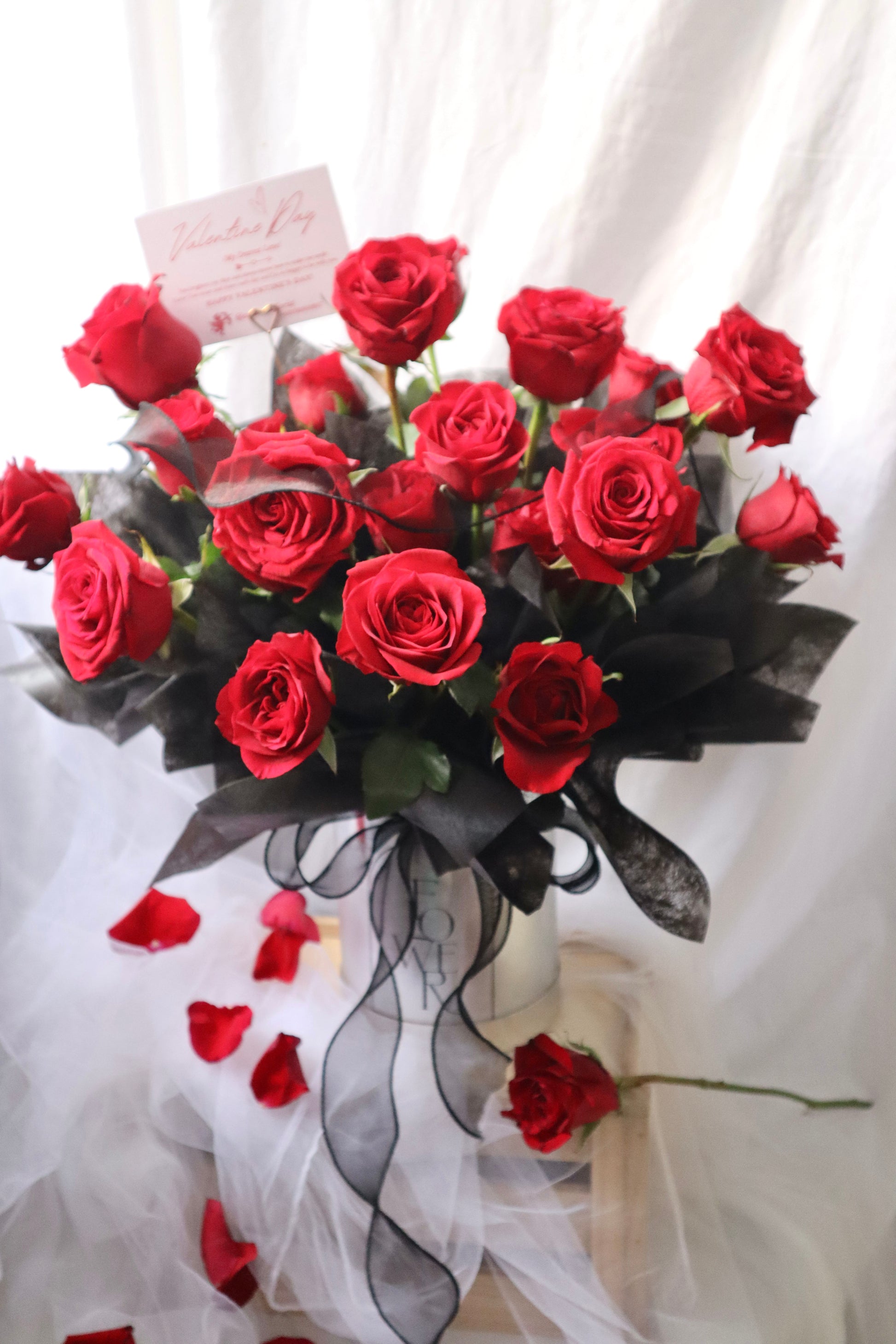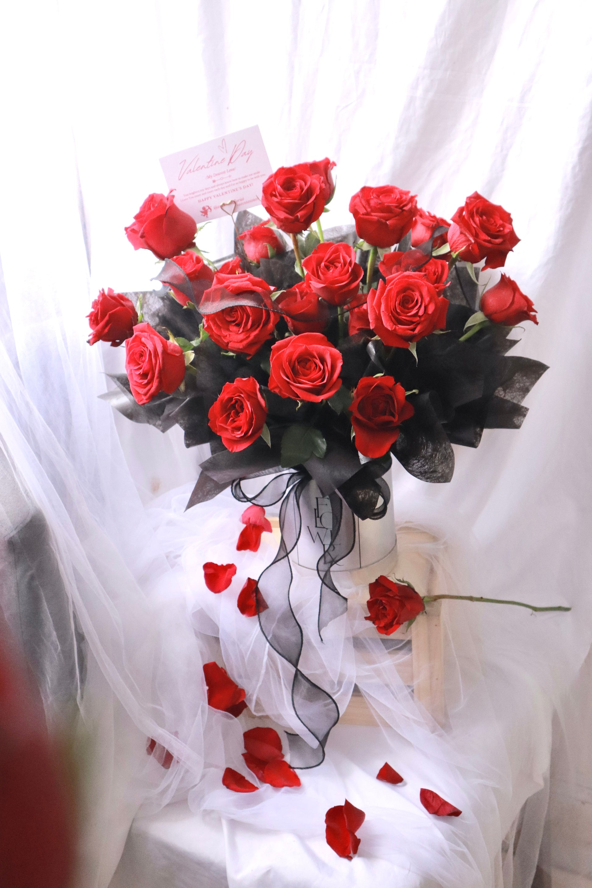 Experience the epitome of sophistication with our Magenta roses Flower Box. Impeccably arranged red roses nestled within a chic box, exuding timeless beauty and charm. Elevate any occasion with this stunning gift, a symbol of enduring love and elegance.