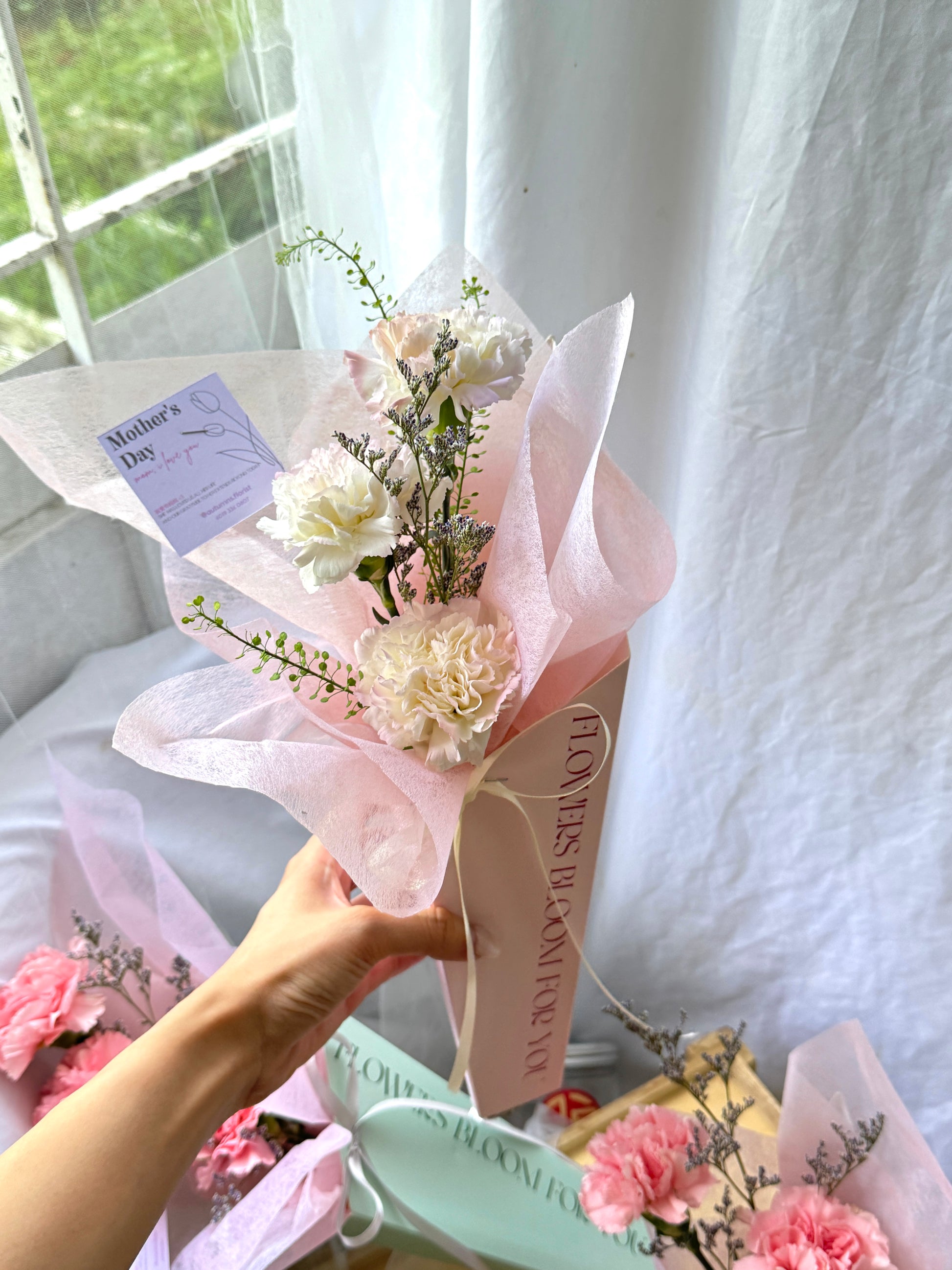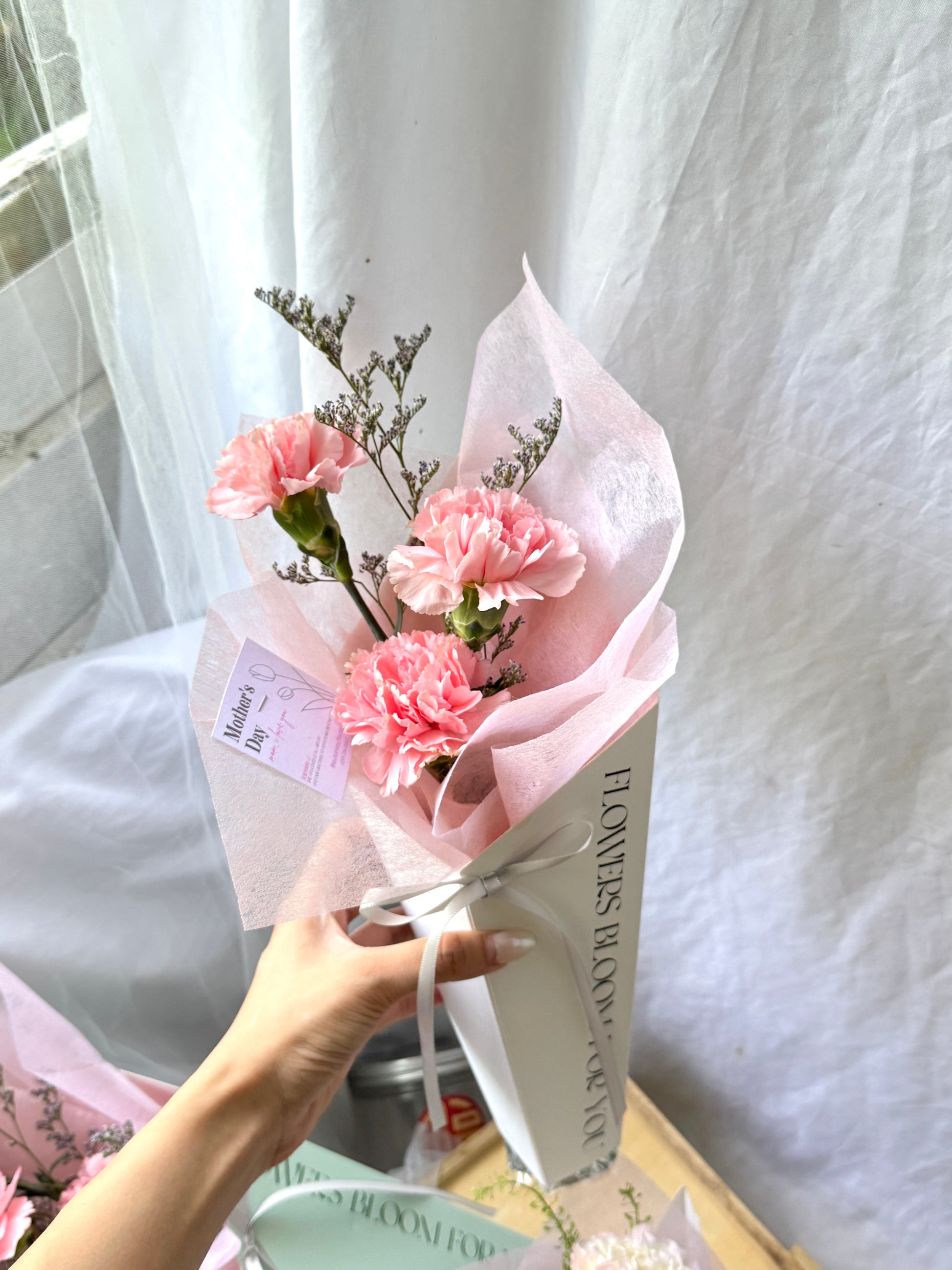 Introducing the Mini Gentle Carnation Flower Box, blending delicate hues of carnation and purple casphia. This arrangement embodies elegance and charm, ideal for gifts and celebrations with its soothing color palette and carefully curated floral ensemble.