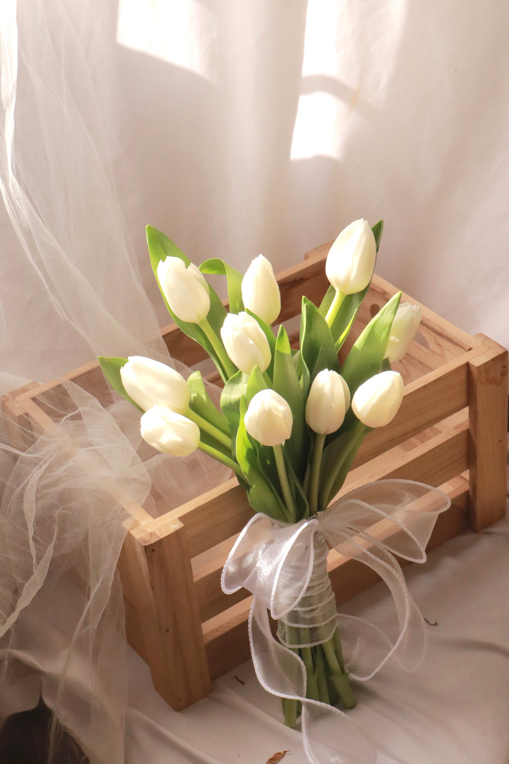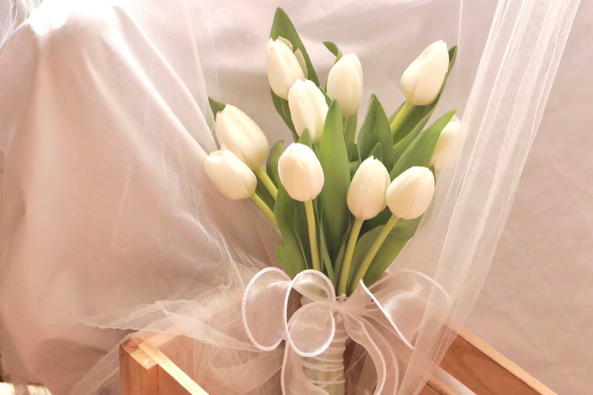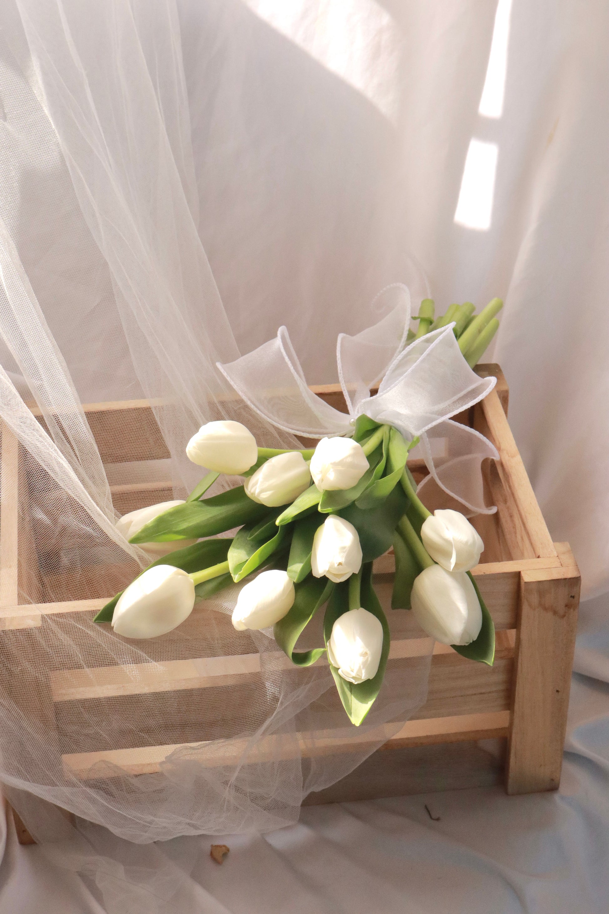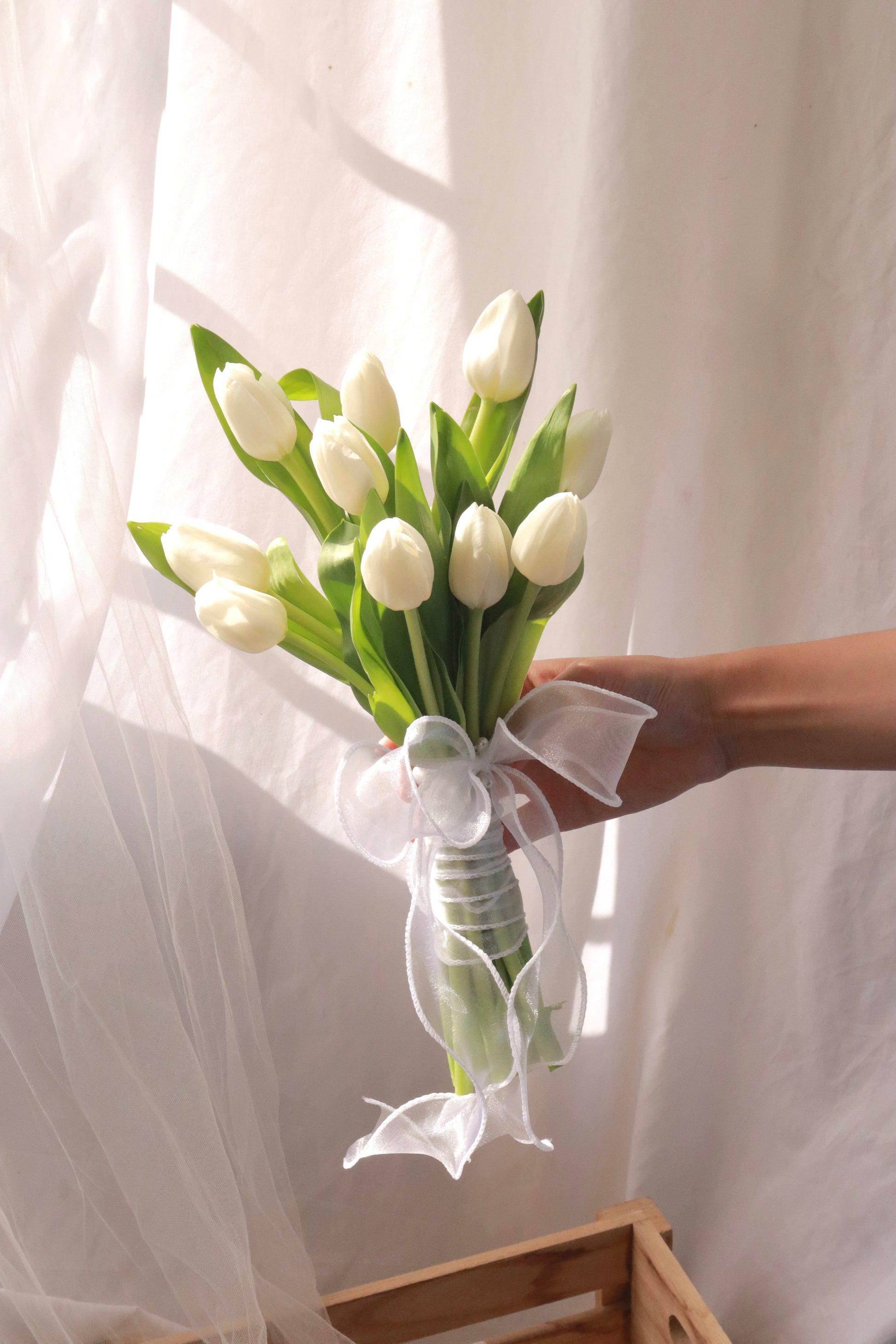 Introducing the Pearl White Tulip Bridal Bouquet, a stunning blend of purity and elegance. Its pristine white hues symbolize grace and sophistication, complemented by delicate green accents for a timeless appeal. Perfect for weddings, it embodies beauty and purity in every petal. Ideal for your special day.