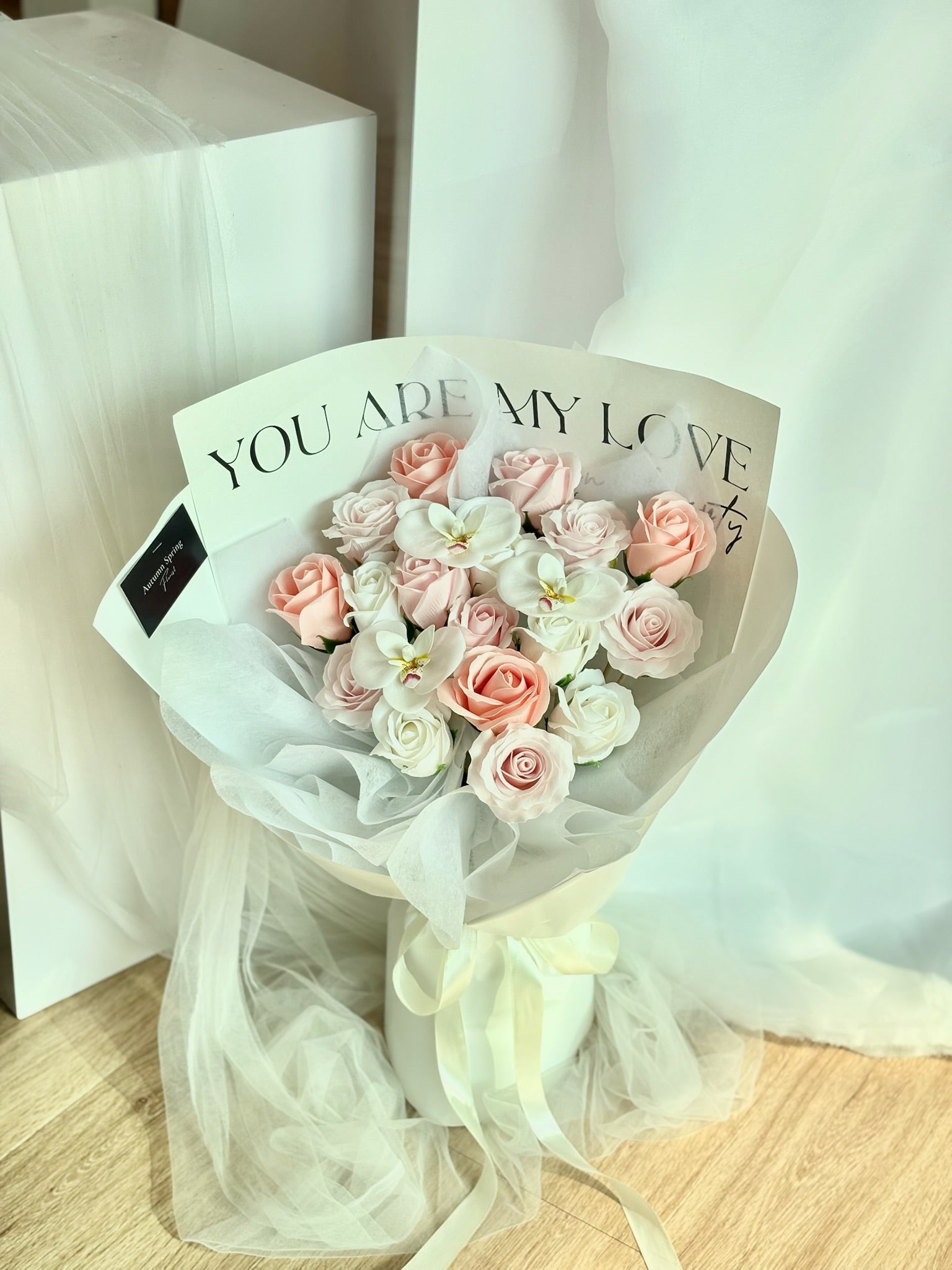 A romantic blend of soft and sweet tones, this pink-themed soap flower bouquet exudes warmth, affection, and tenderness. With delicate fragrance and everlasting charm, it’s a lovely gift to express love, care, or heartfelt gratitude.