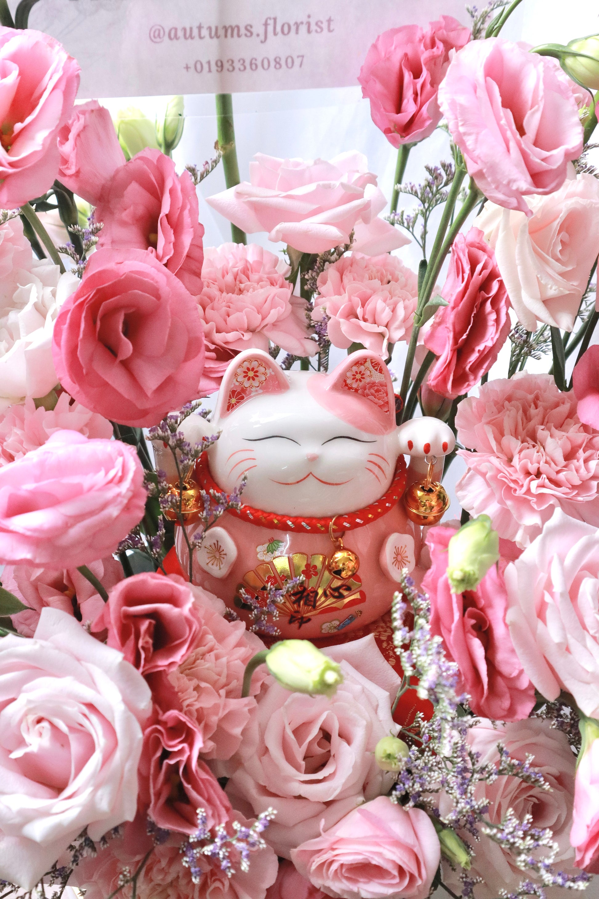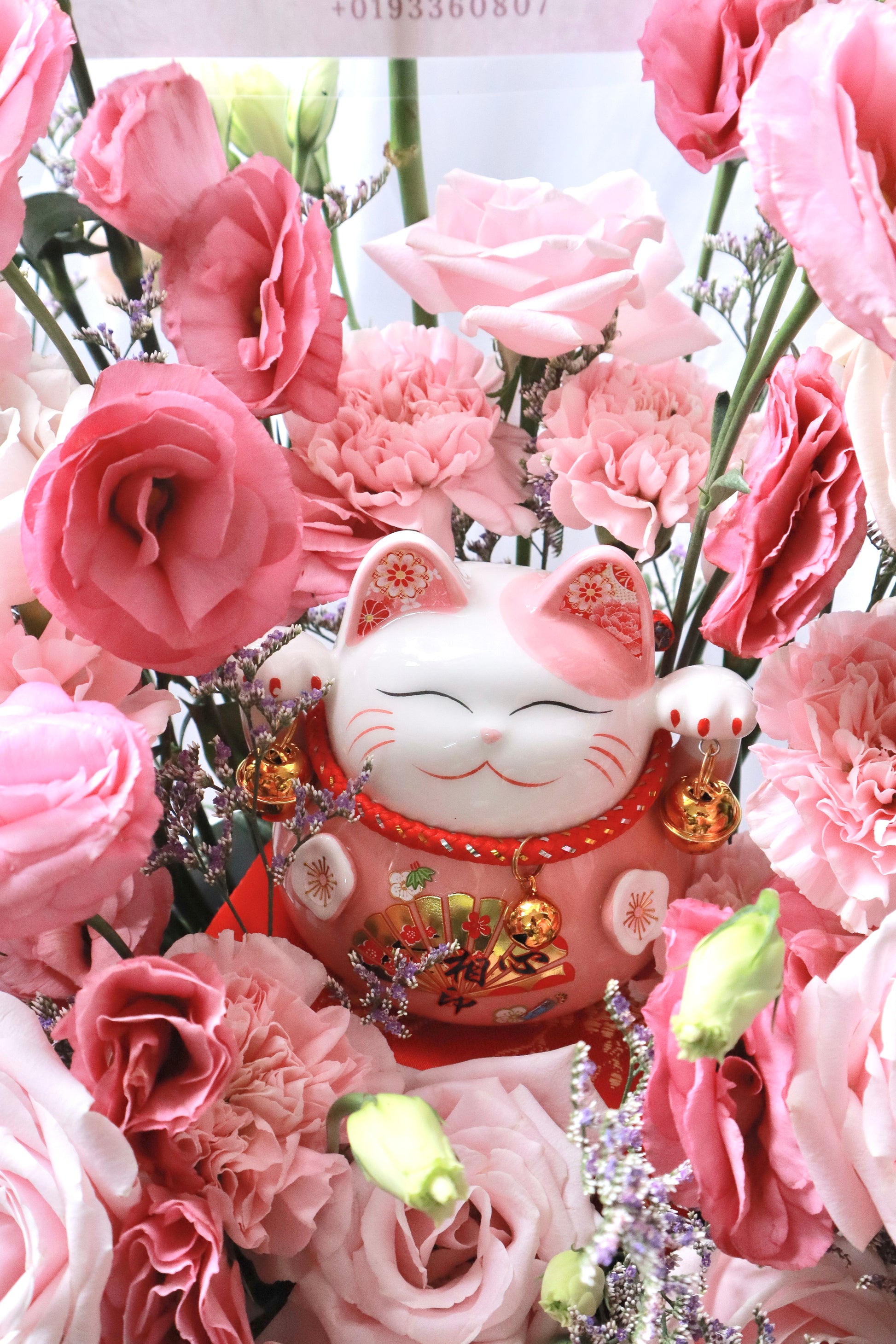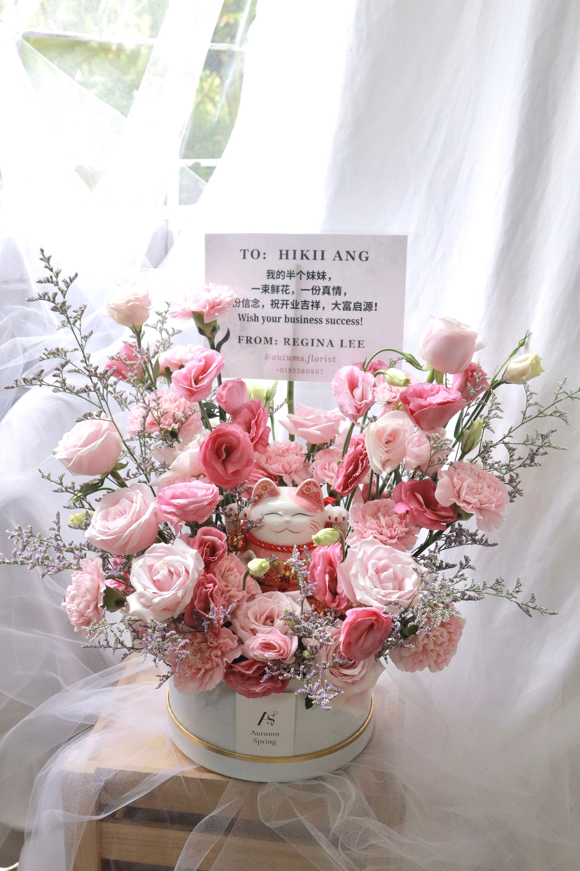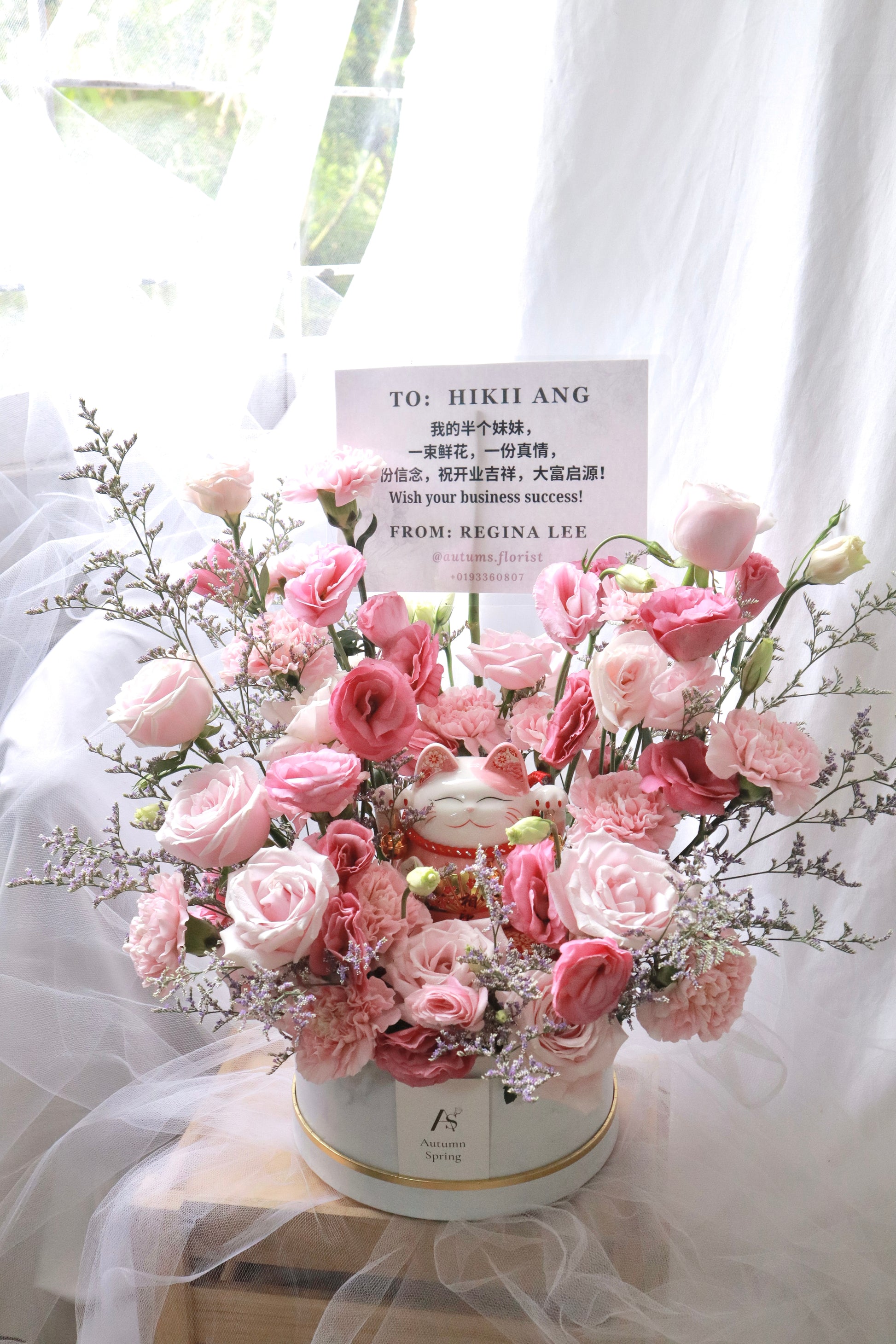Pink Shower Grand Opening Flower Box with Fortune Cat