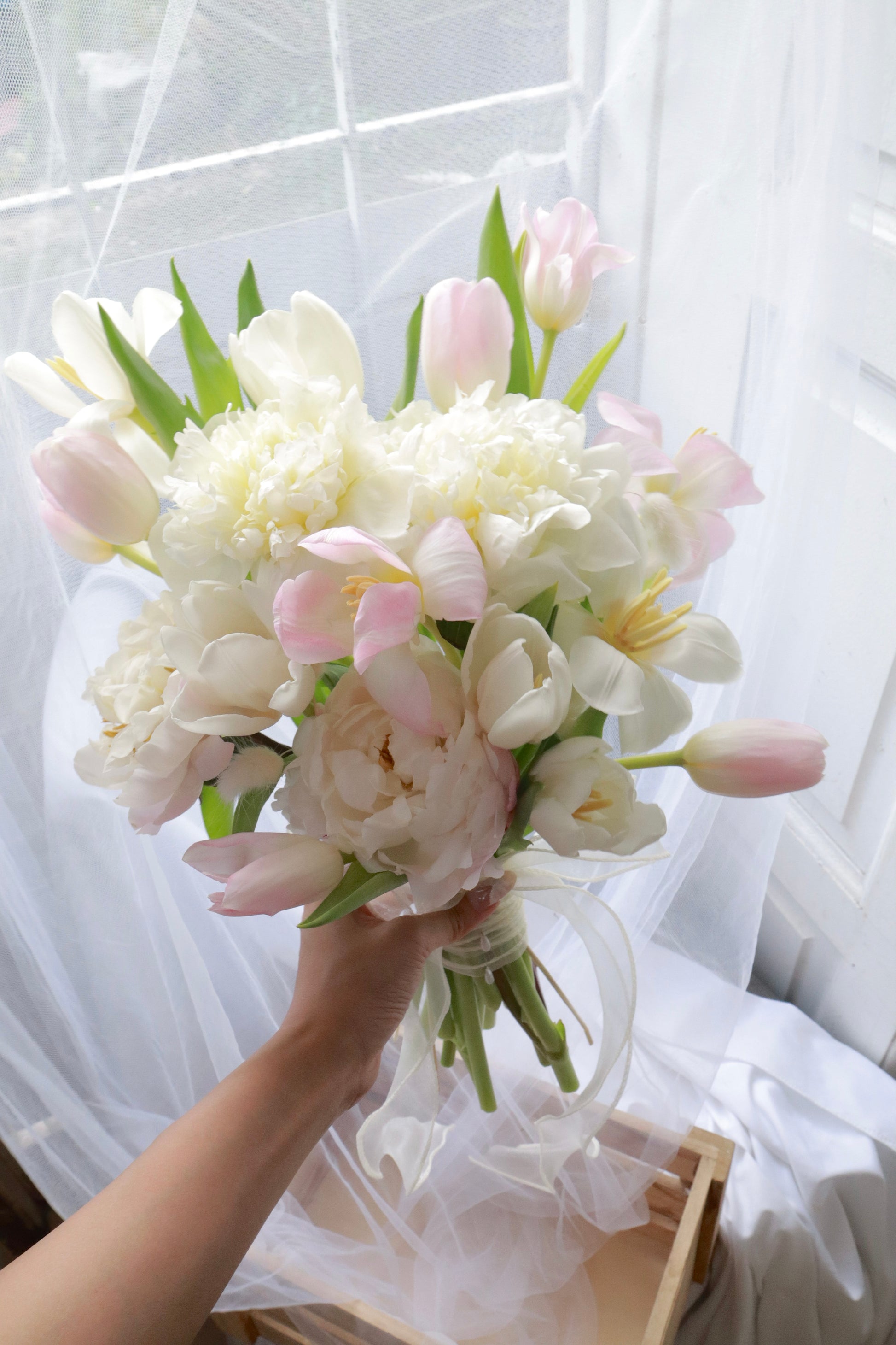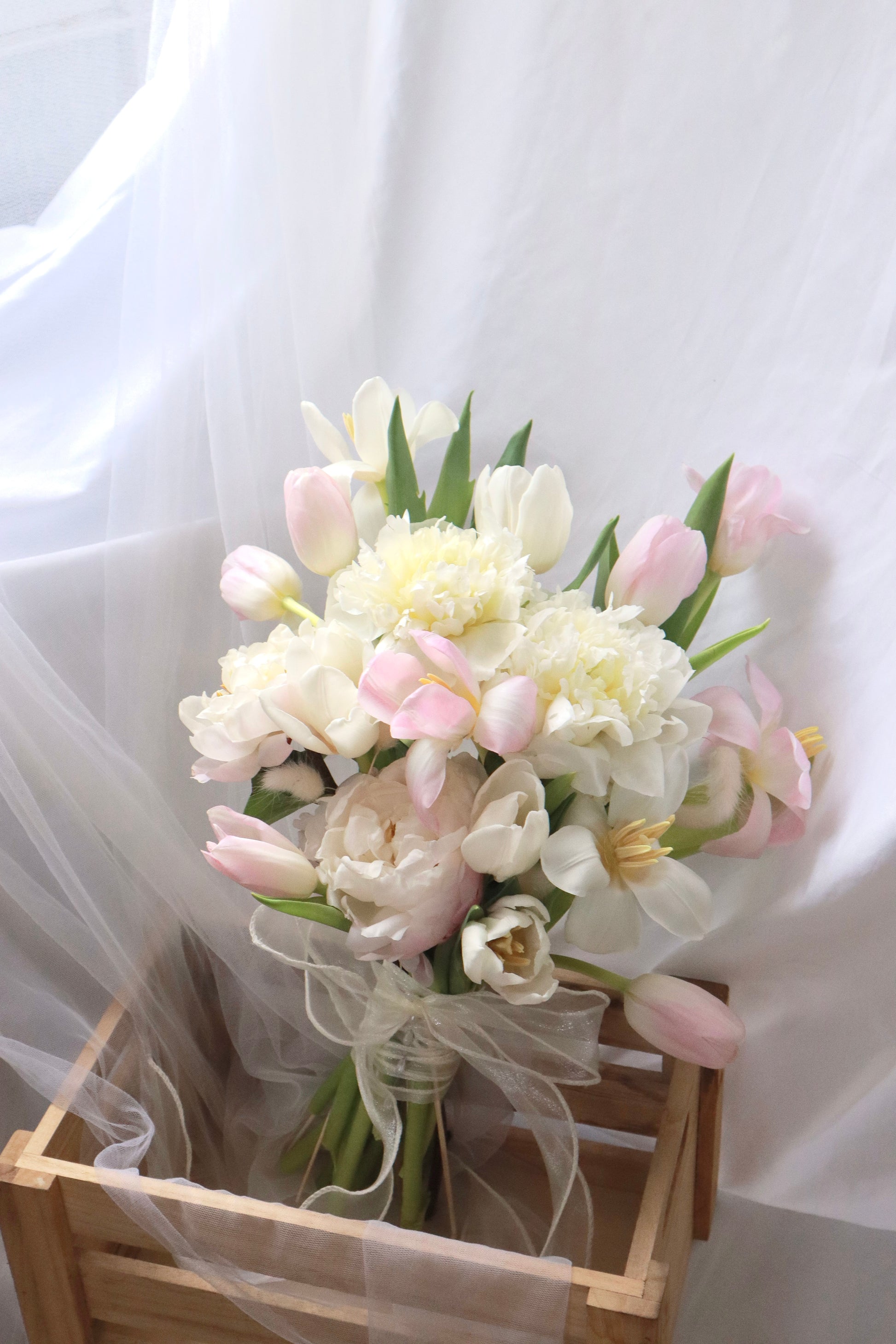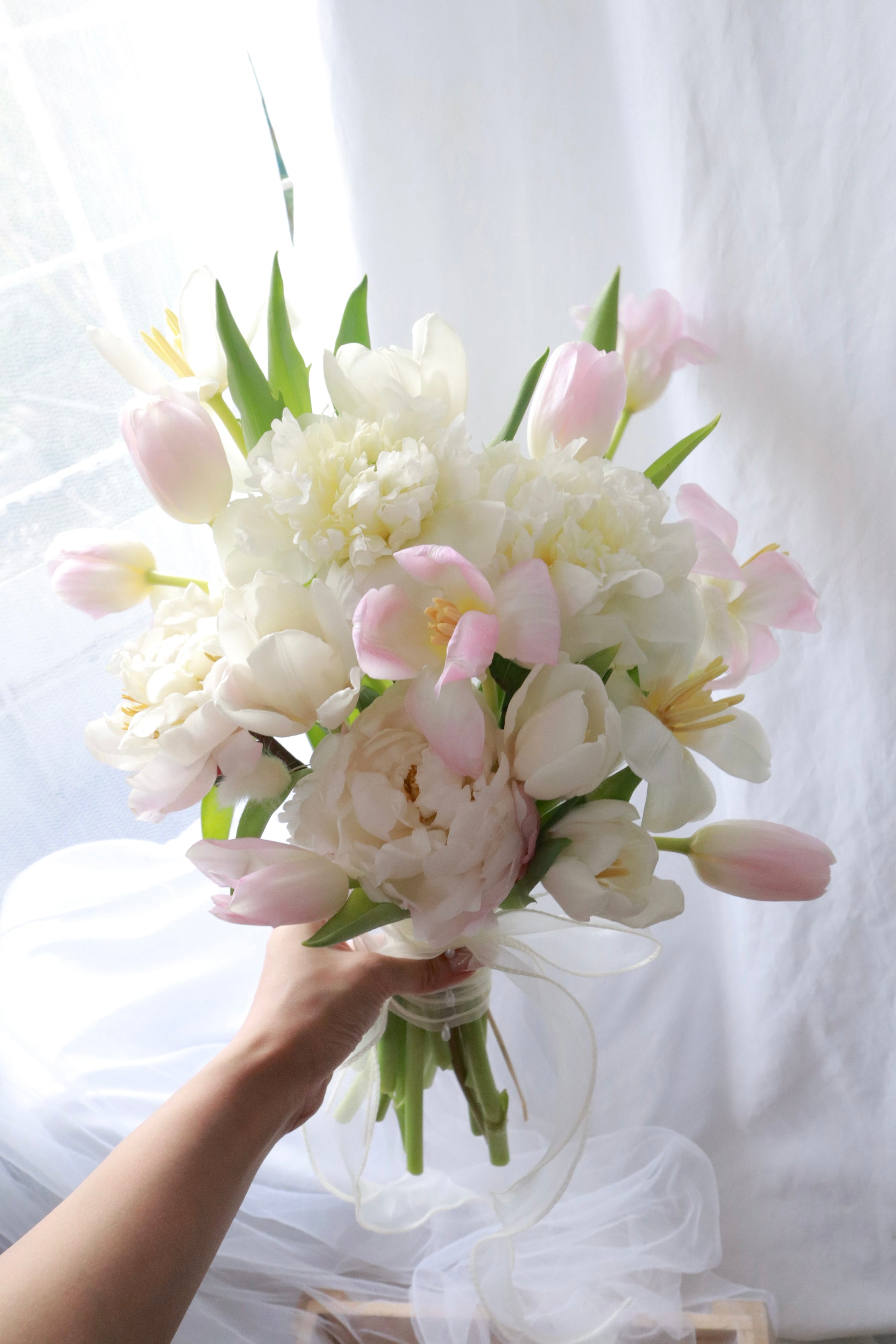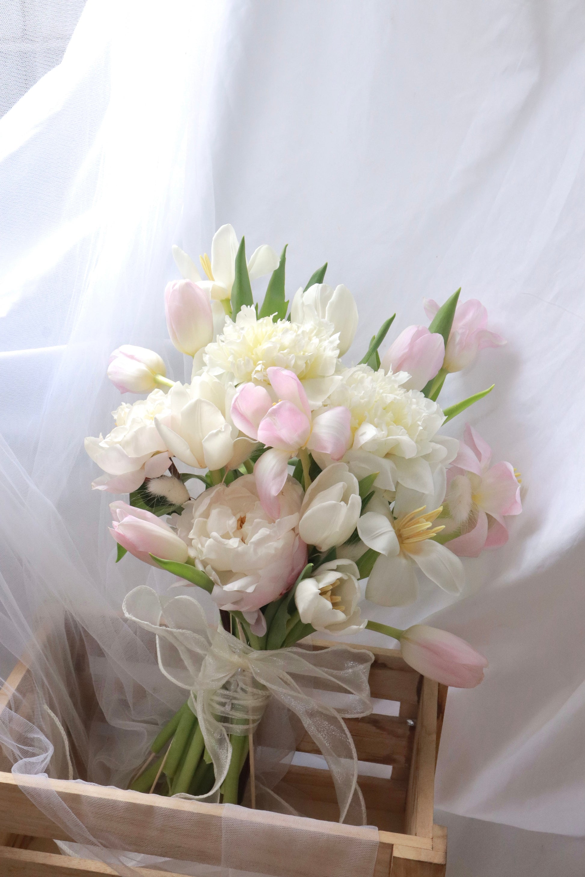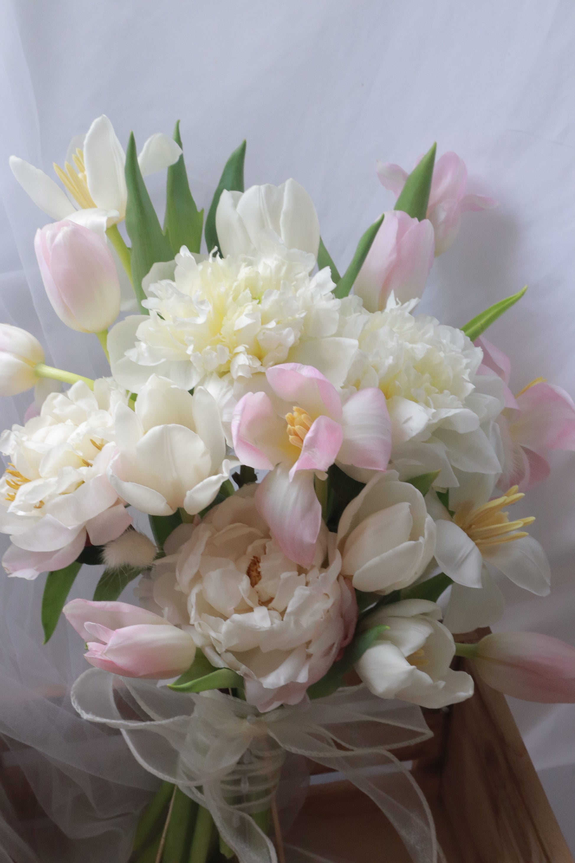 Prudence Pink Tulip & White Peony Bridal Bouquet