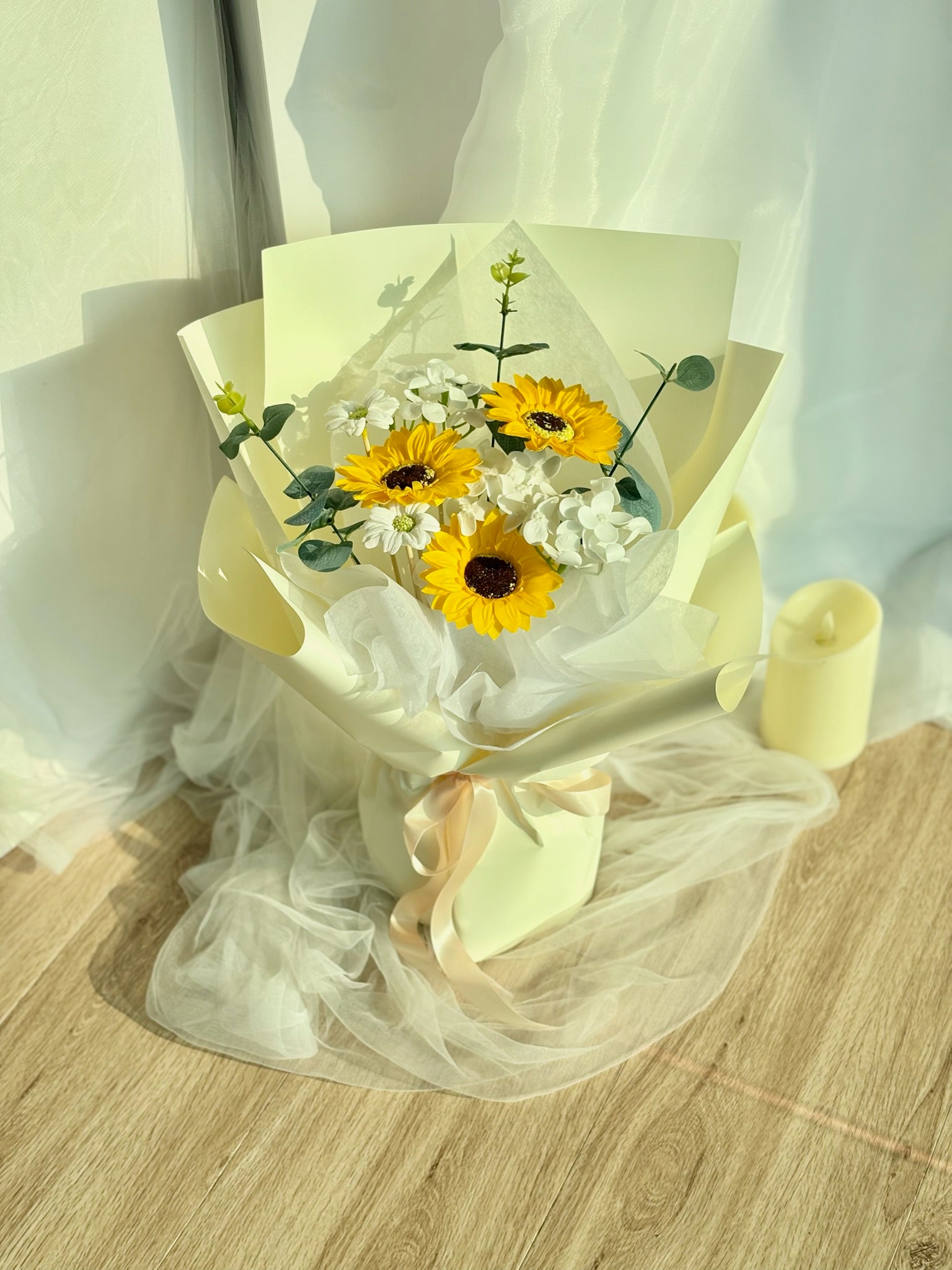 Celebrate a bright future with this stunning Sunflower Soap Flower Bouquet. Symbolizing success, warmth, and new beginnings, the vibrant sunflowers are the perfect gift for any graduate. Handcrafted from high-quality soap, these flowers not only serve as a beautiful keepsake but also a lasting reminder of hard work and achievement.