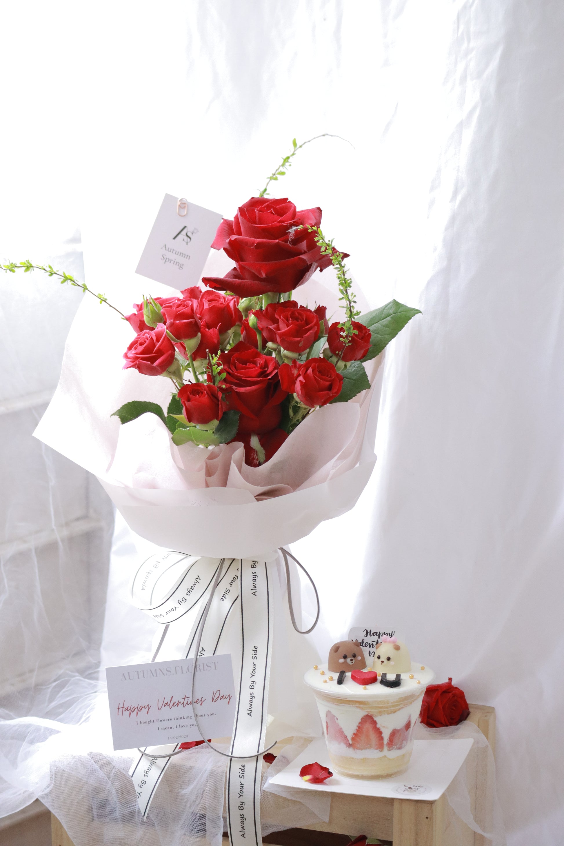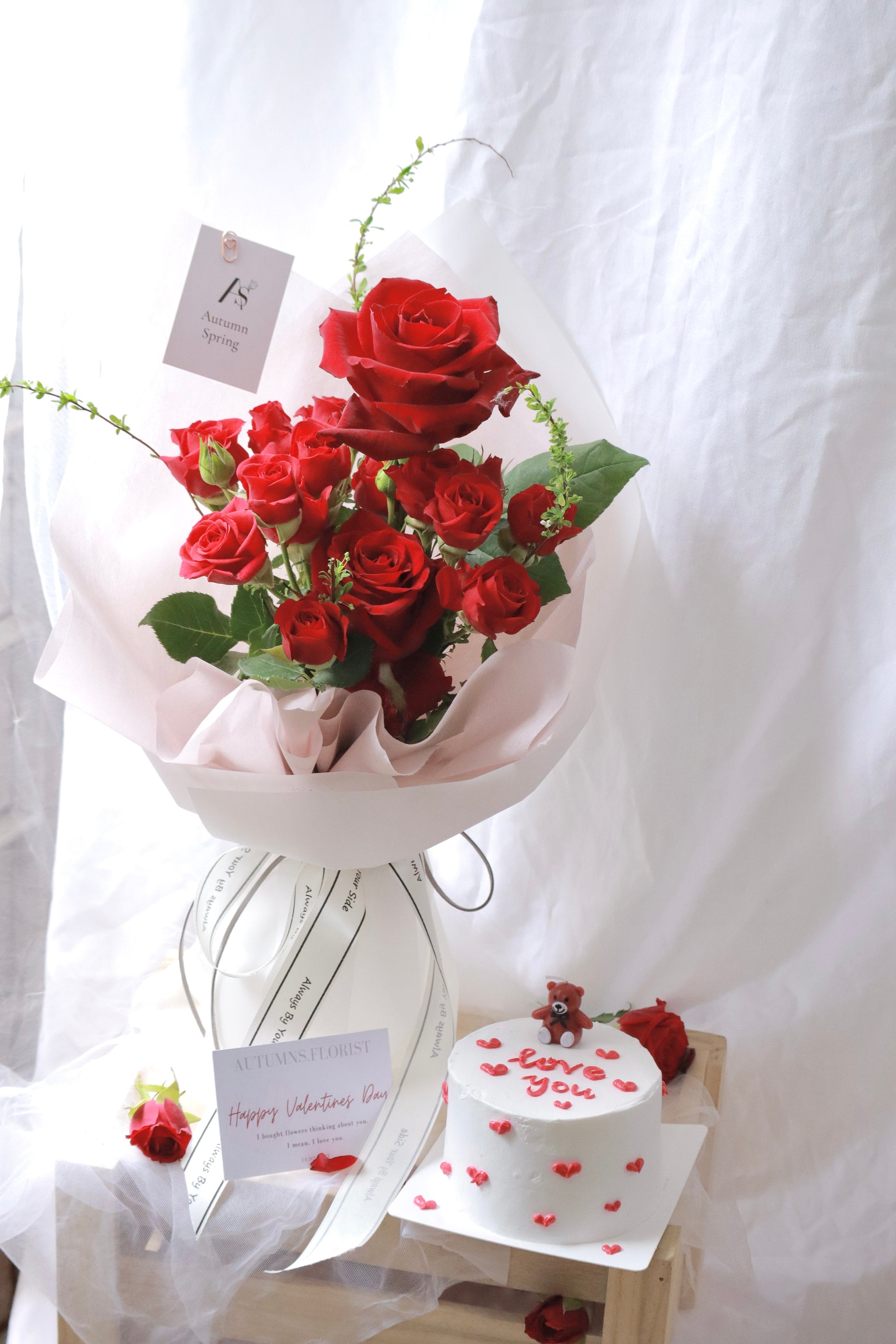 Red Rose, Snow Flakes leaf, Red Rose Spray (excluded cake)