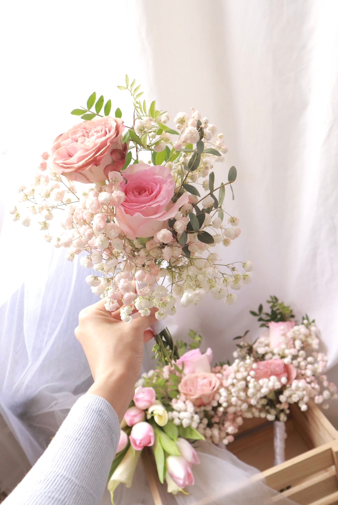 欢迎联系我们定制您理想的花艺,可选择花材、颜色和风格。
