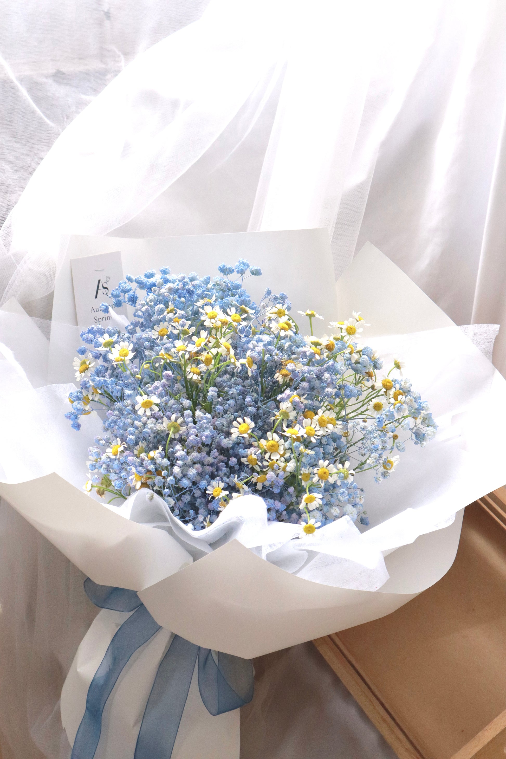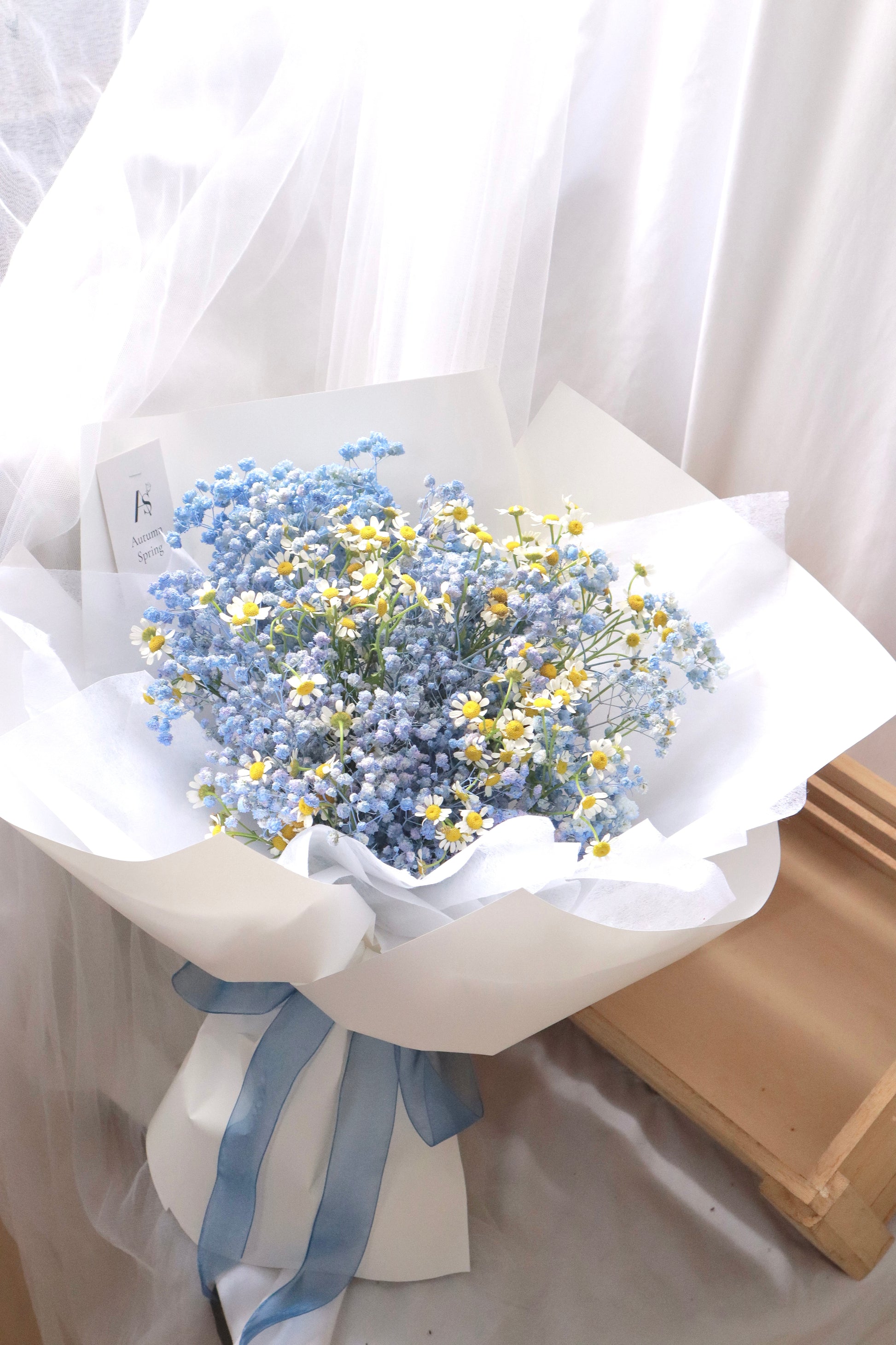 Embrace serenity with the Sky Blue Babybreath Bouquet. Featuring delicate, ethereal blue hues and charming accents, this bouquet brings a touch of tranquil elegance and whimsy, making it a perfect choice for adding a serene and refreshing flair to any setting.