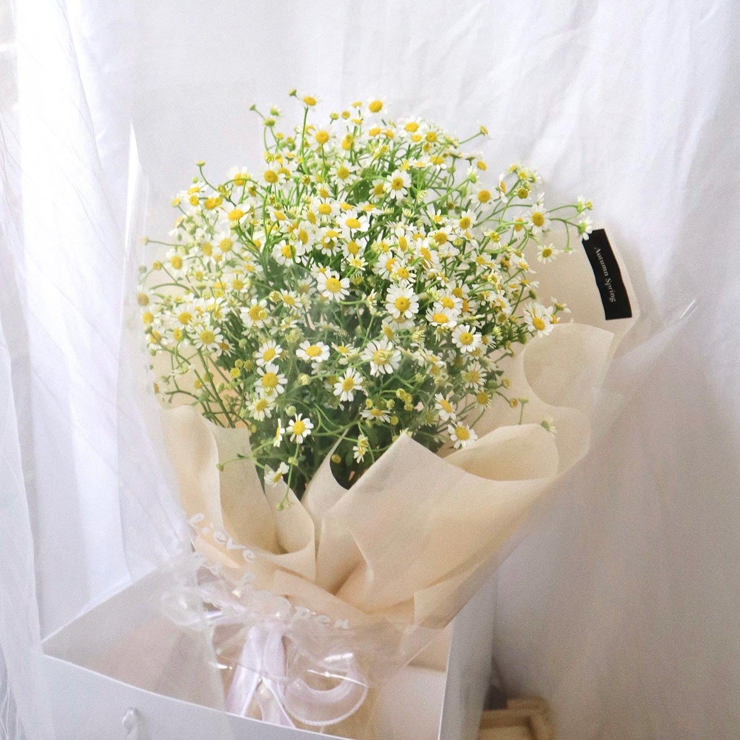 Introducing the Sophie Chamomile Bouquet, a delicate arrangement of chamomile blooms, symbolizing calmness and purity. Ideal for gifting or enhancing serene spaces, this bouquet radiates tranquility and natural beauty, perfect for those seeking a touch of soothing elegance.