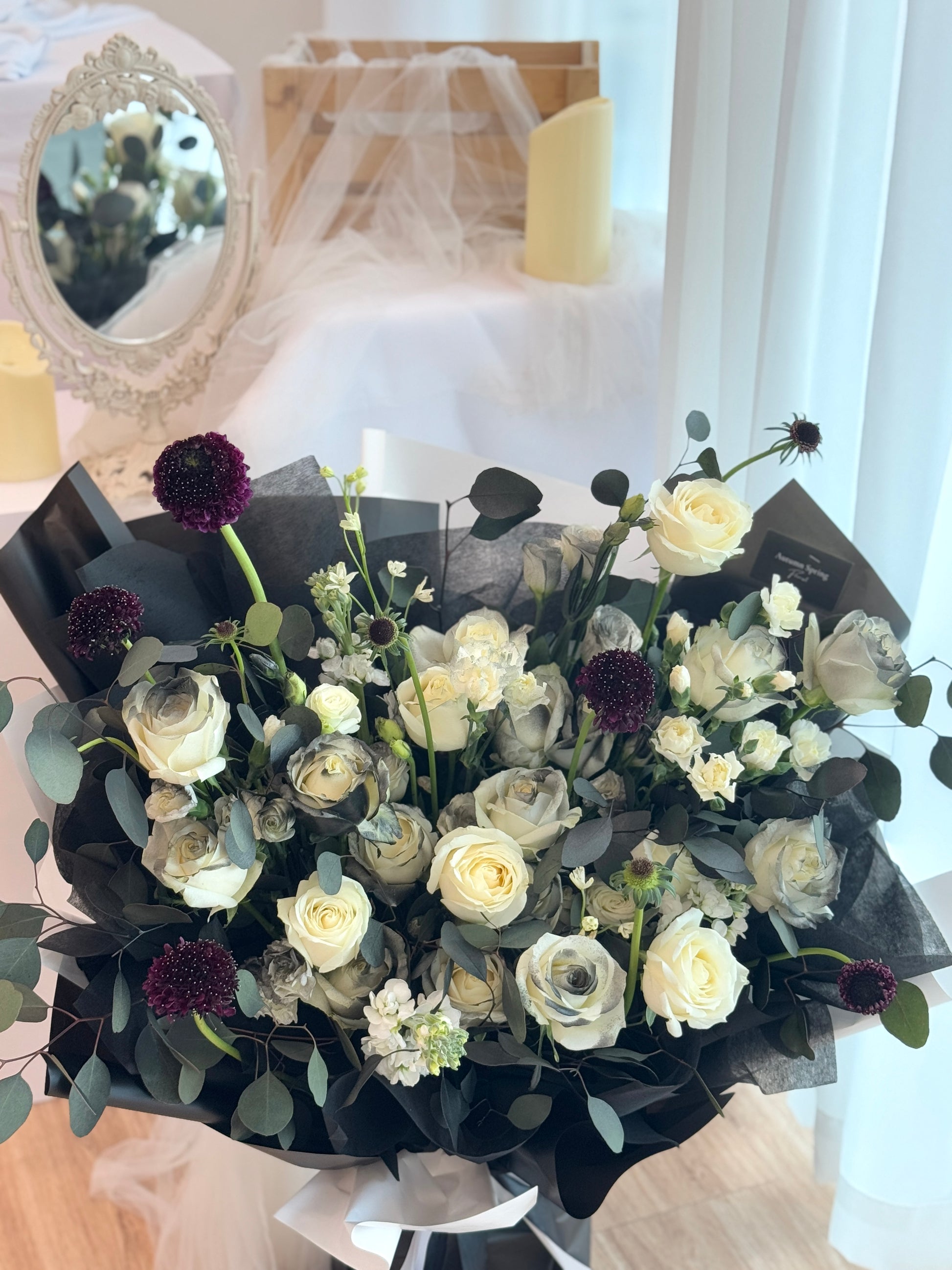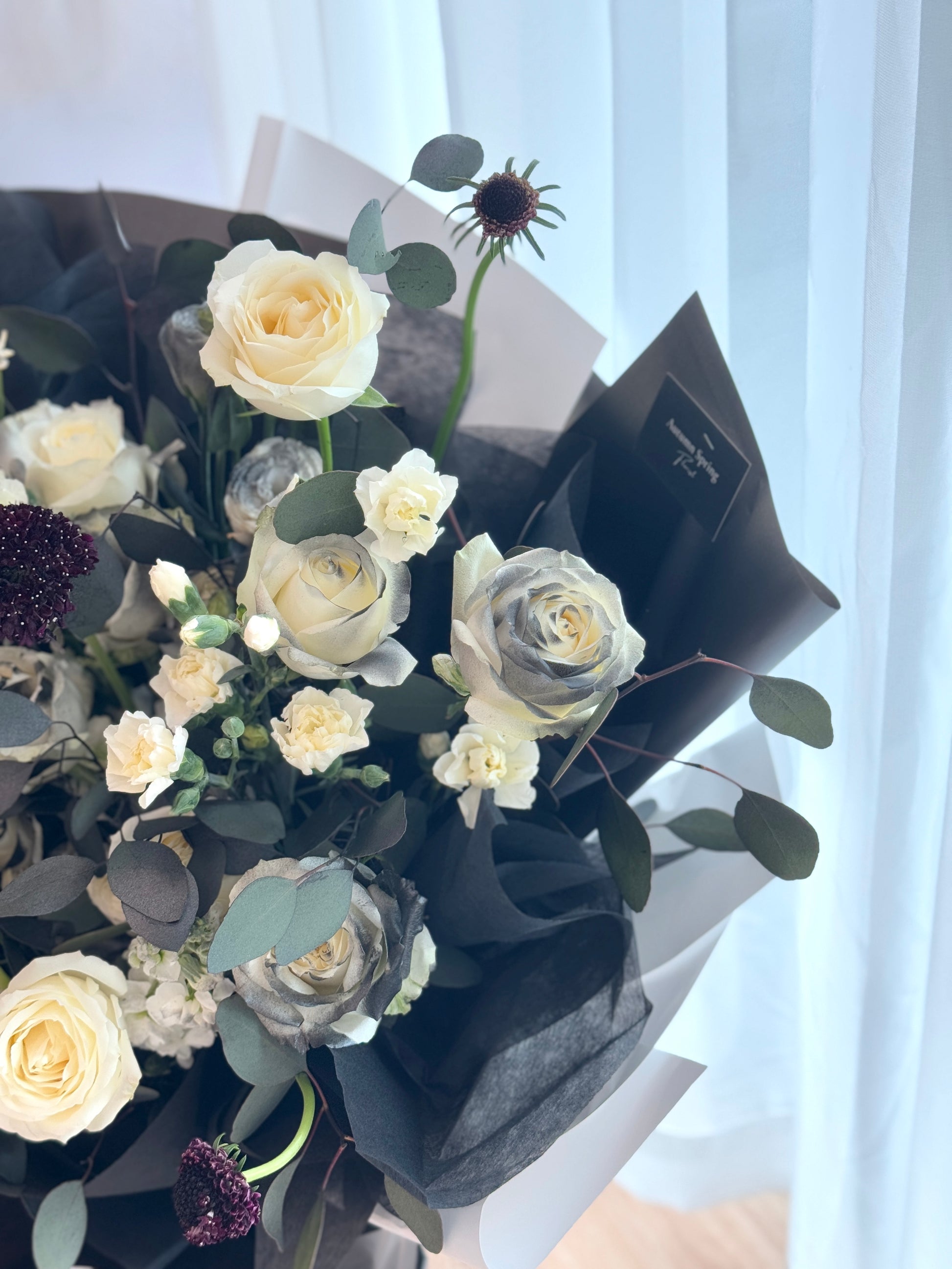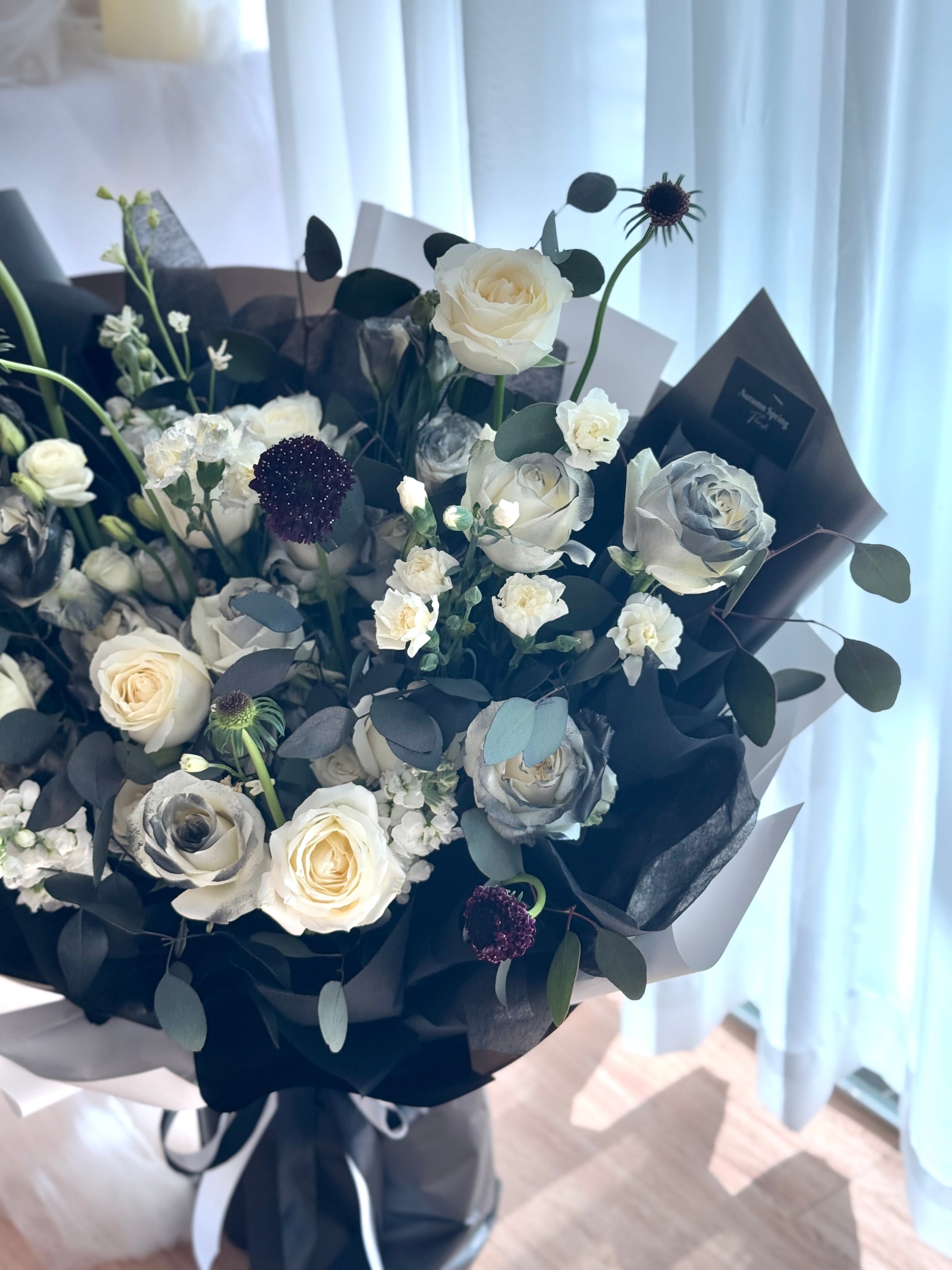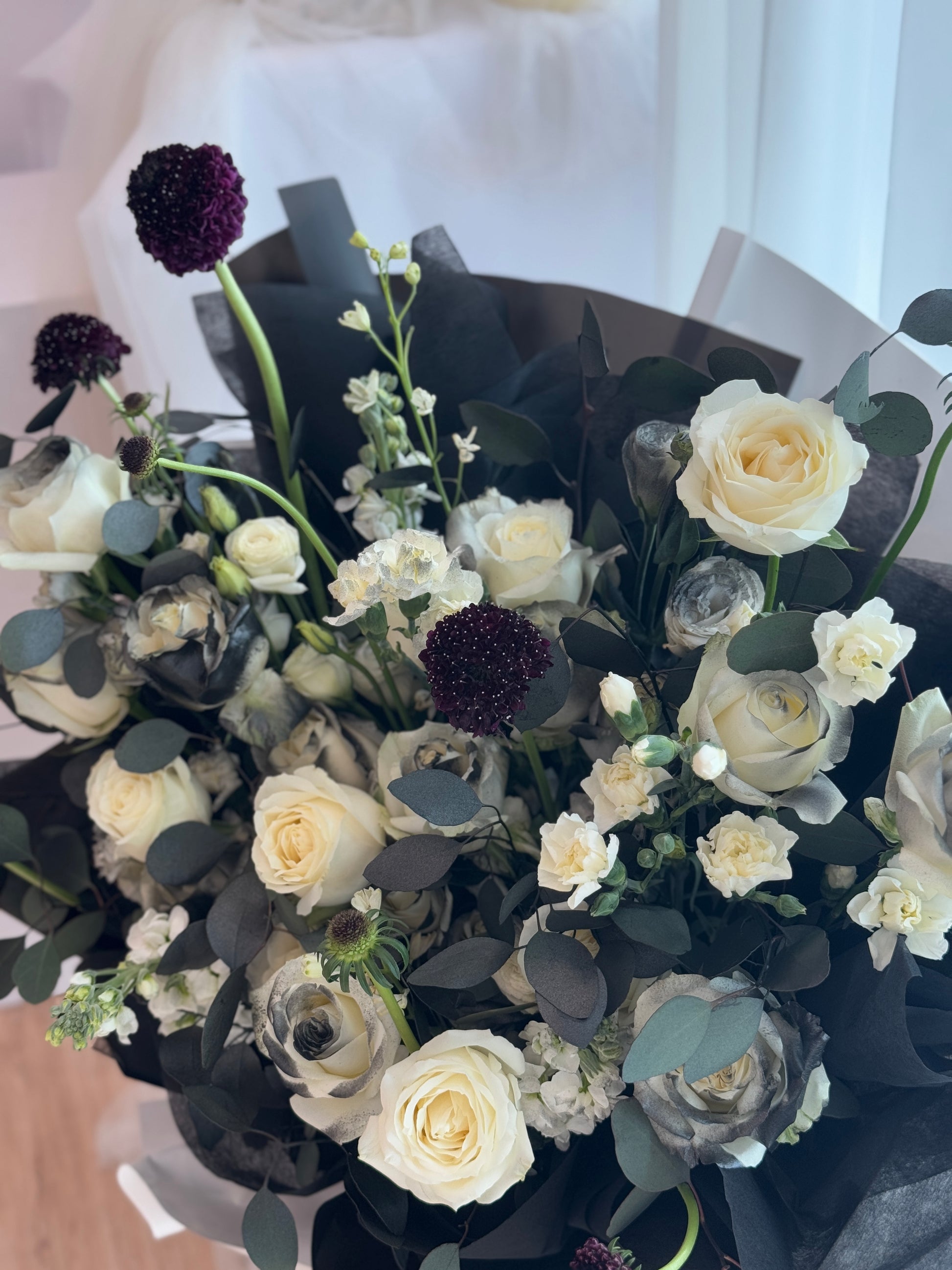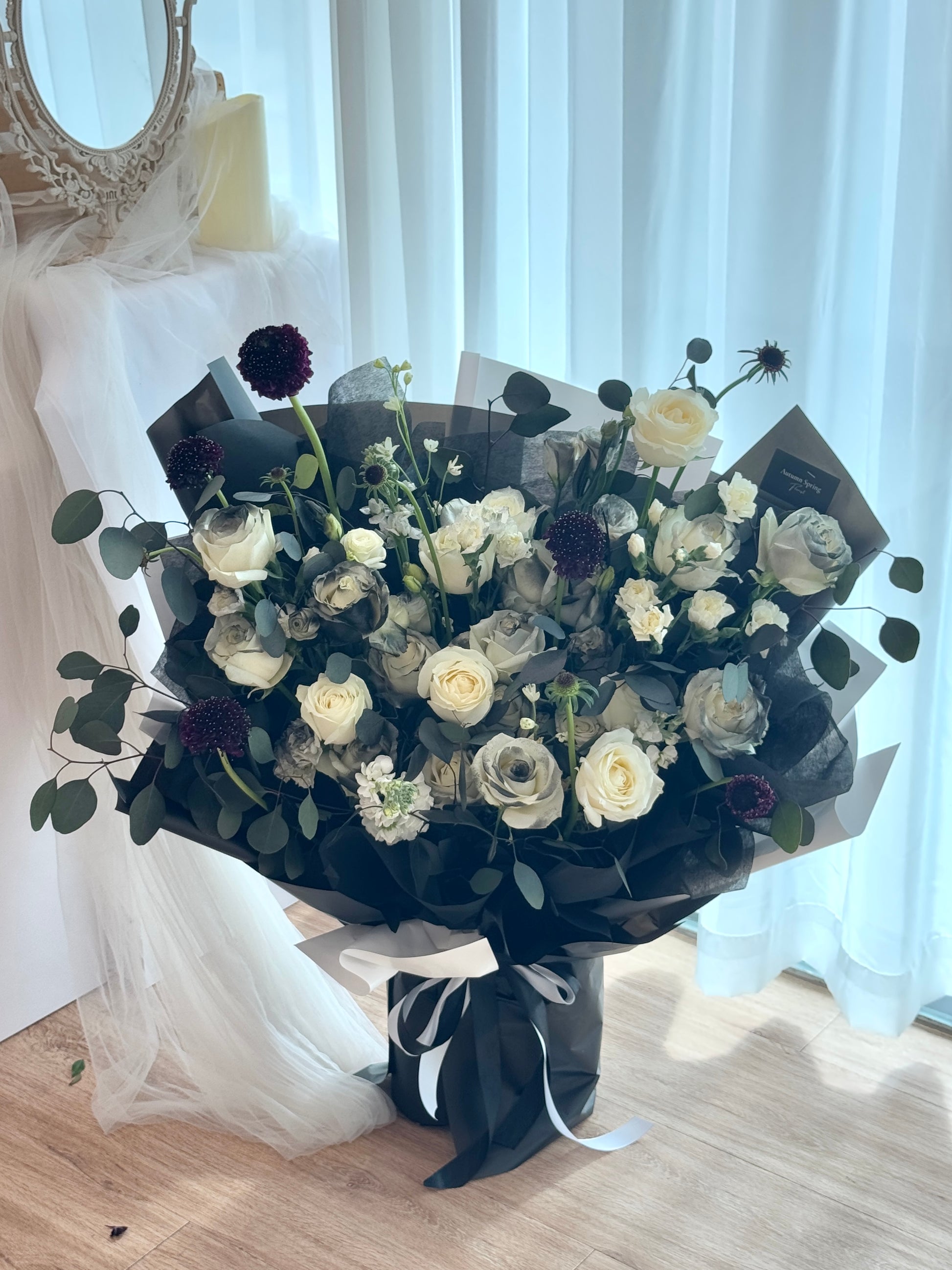 In the stillness of night, beauty unfolds in silence.This Starlight Black Theme XL Flower Bouquet draws its strength from shadows—deep, bold, and unapologetically elegant.Featuring rich dark tones, moody florals, and a whisper of mystery, it’s made for those who bloom in their own way.Perfect for the rebels, romantics, and midnight dreamers.