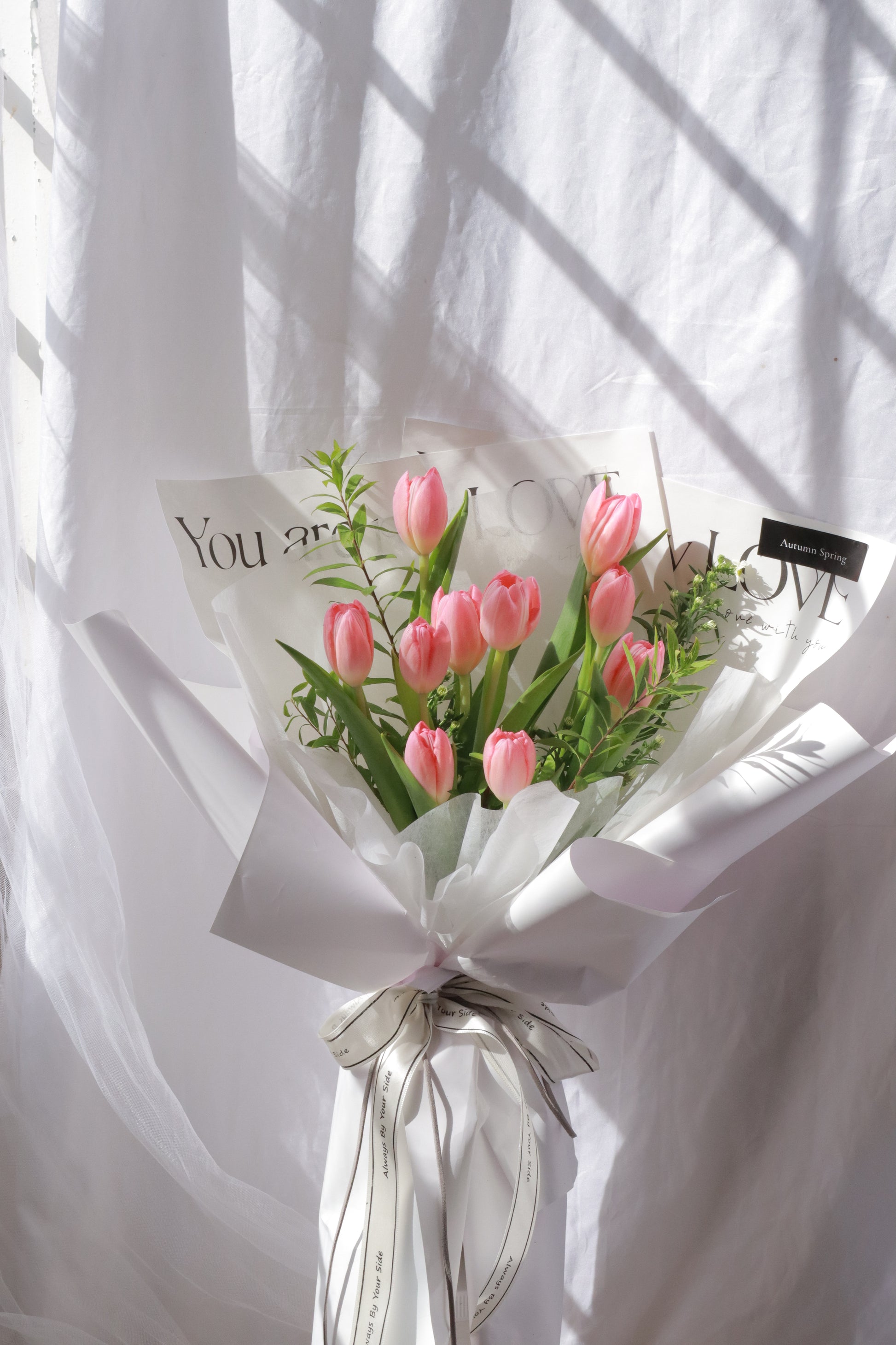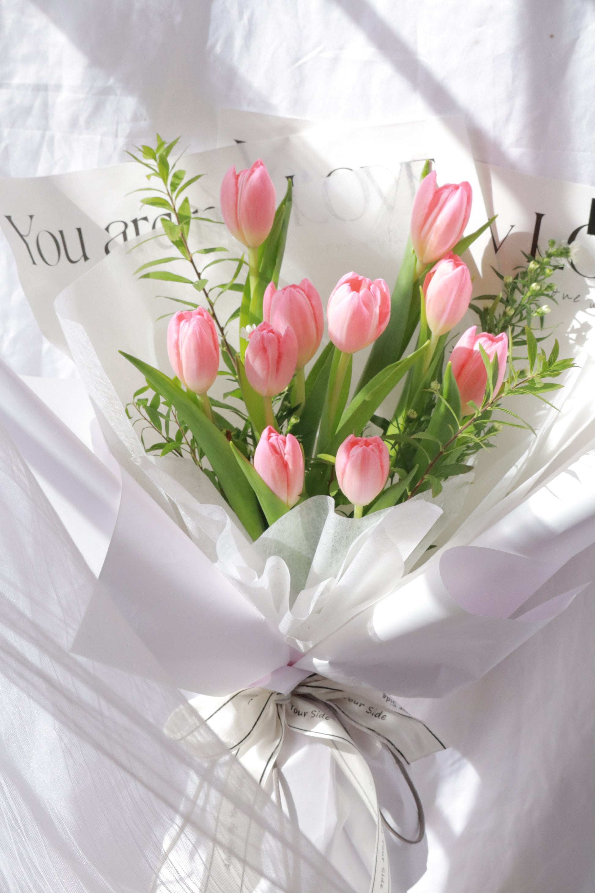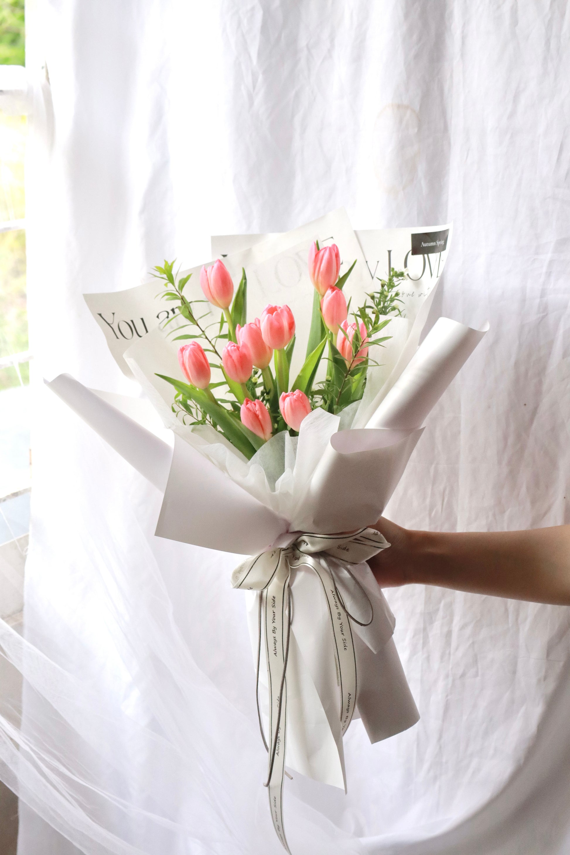 Embrace the joy of the season with the Summer Happiness Tulip Bouquet. This radiant arrangement features soft pinks and bright whites, creating a cheerful and elegant display. Perfect for celebrating summer's warmth and bringing happiness to any setting.