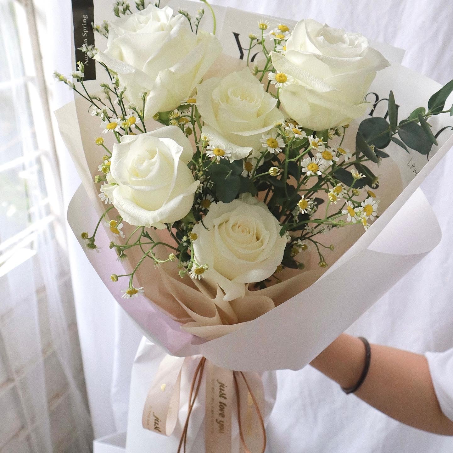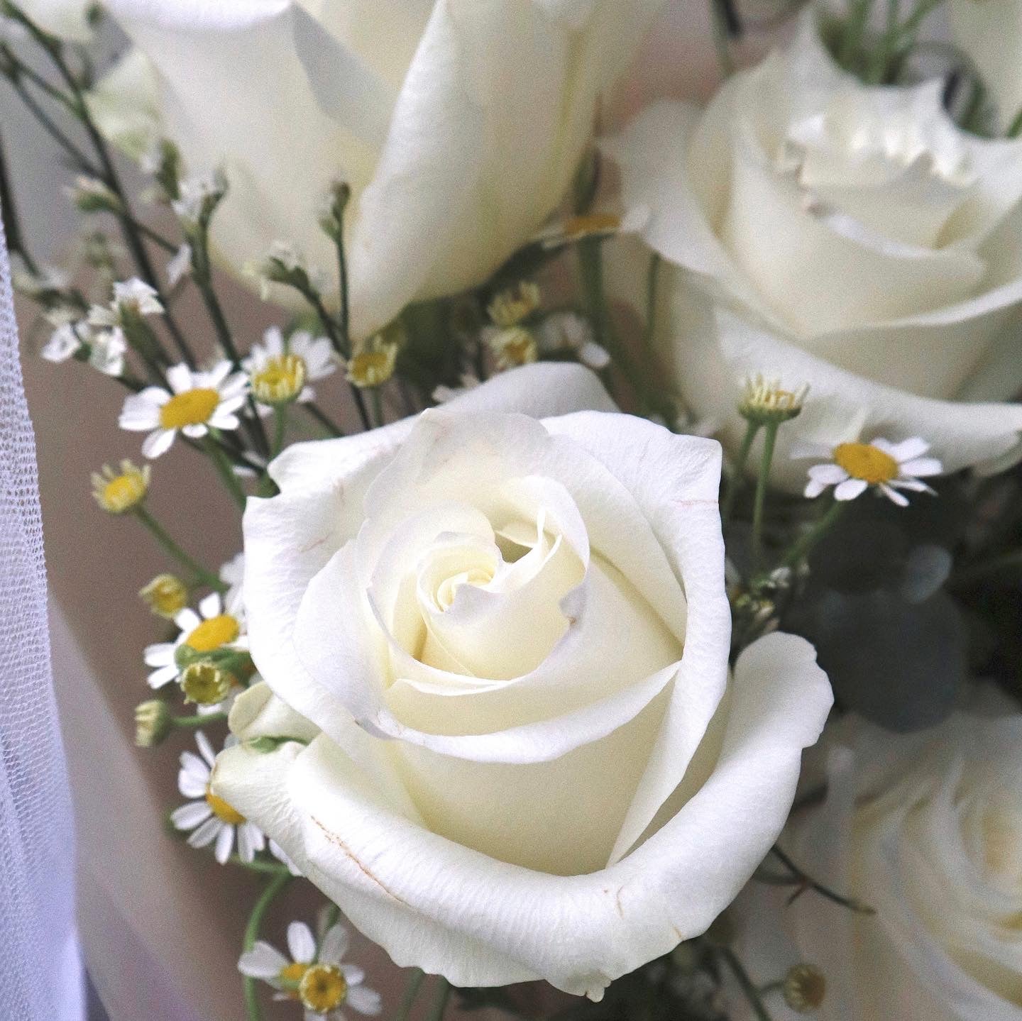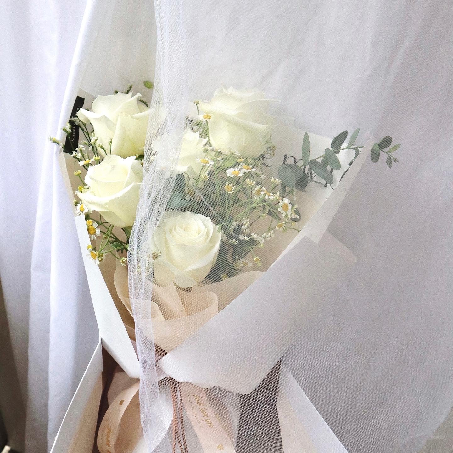 纯白玫瑰花束