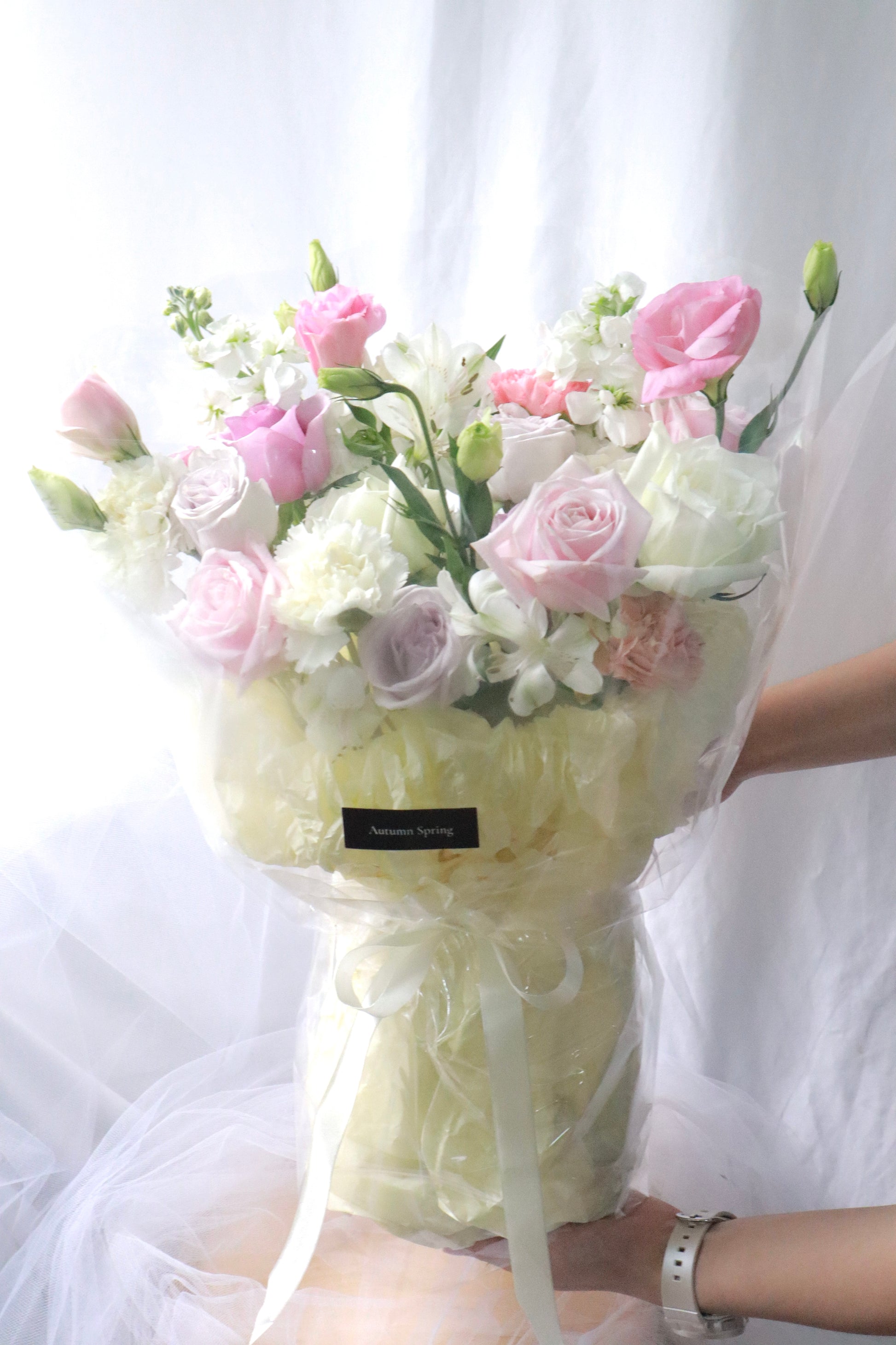 欢迎联系我们定制您理想的花艺,可选择花材、颜色和风格。